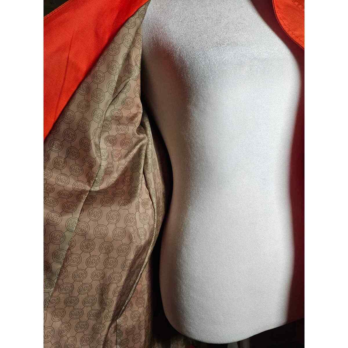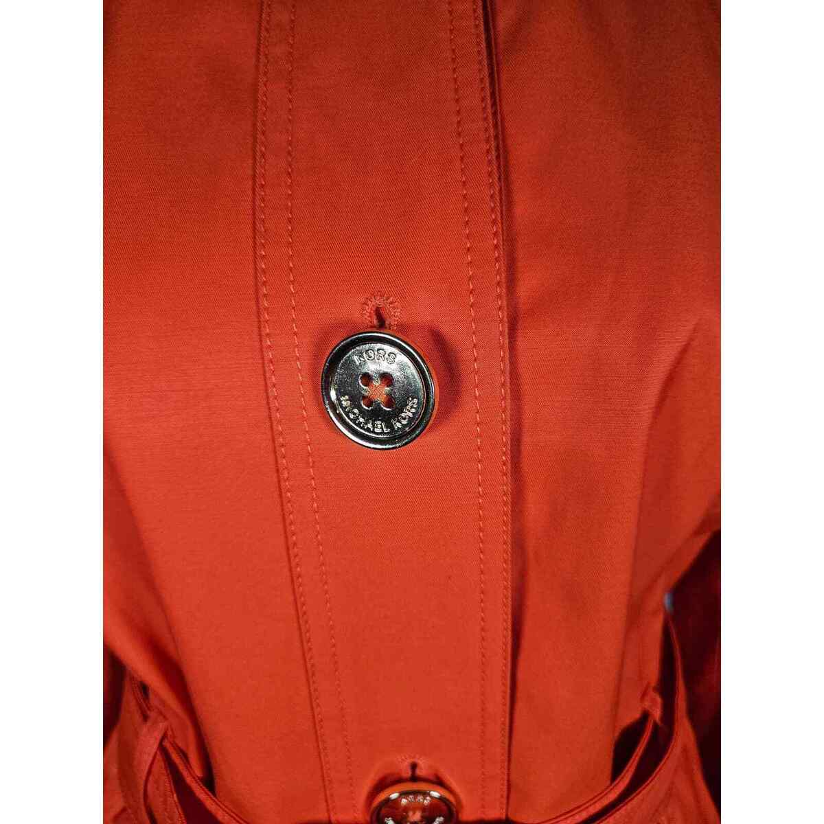 Michael Kors Women's Orange Hooded Rain Coat Belted Gold Buttons Small