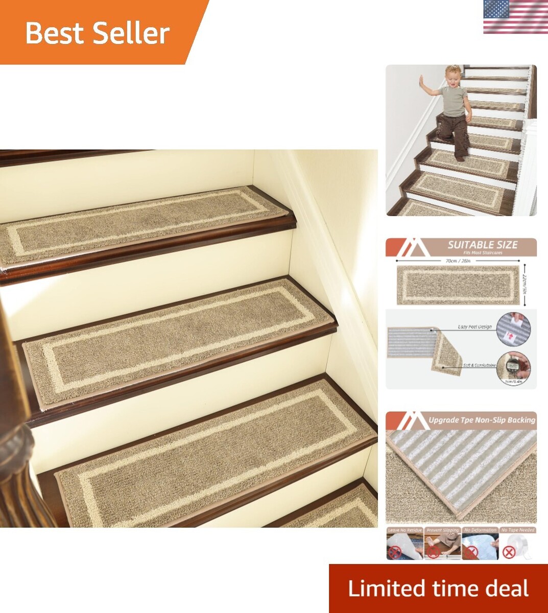 NON-SLIP STAIR RUG: Multi-purpose Stair mats to use the TPE Non-Skid backing on dry floor, helping it to stay in place on your floor, it won't slip or scuff floors. The soft texture adds comfort and safety. Perfect for homes with pets (dogs or cats) or kids and older