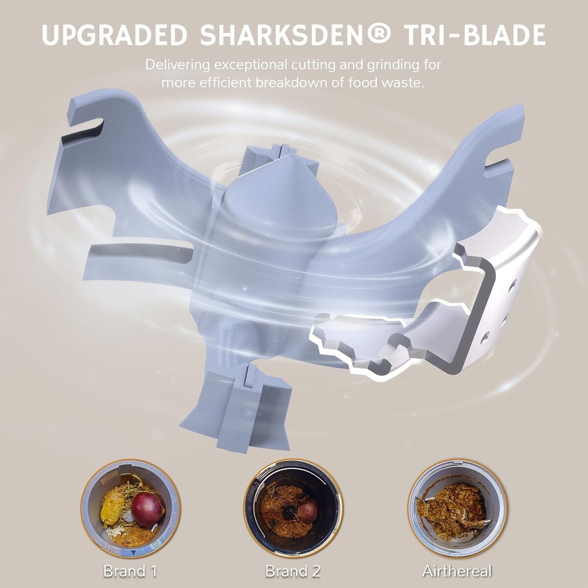 ?? More Reliable Blades: The Upgraded SHARKSDEN Tri-Blade revolutionizes waste disposal with its serrated enhancement, delivering exceptional cutting and grinding for more efficient breakdown of food waste.