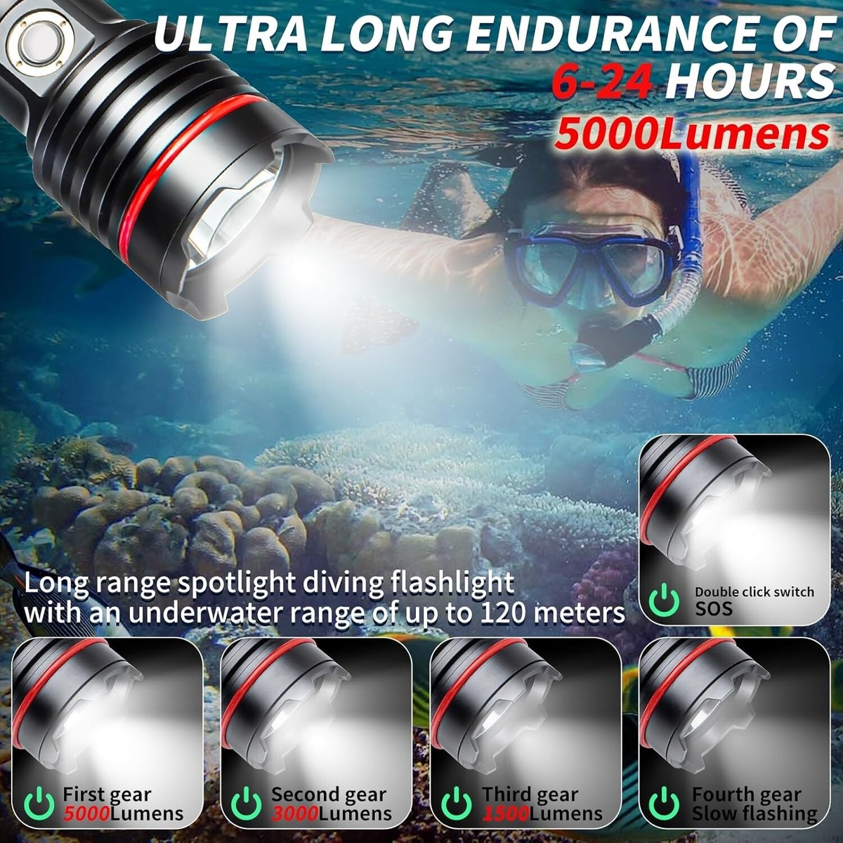Diving Flashlight, 5000Lumens Dive Light,100m Waterproof,Dive Lights Scuba Di...
