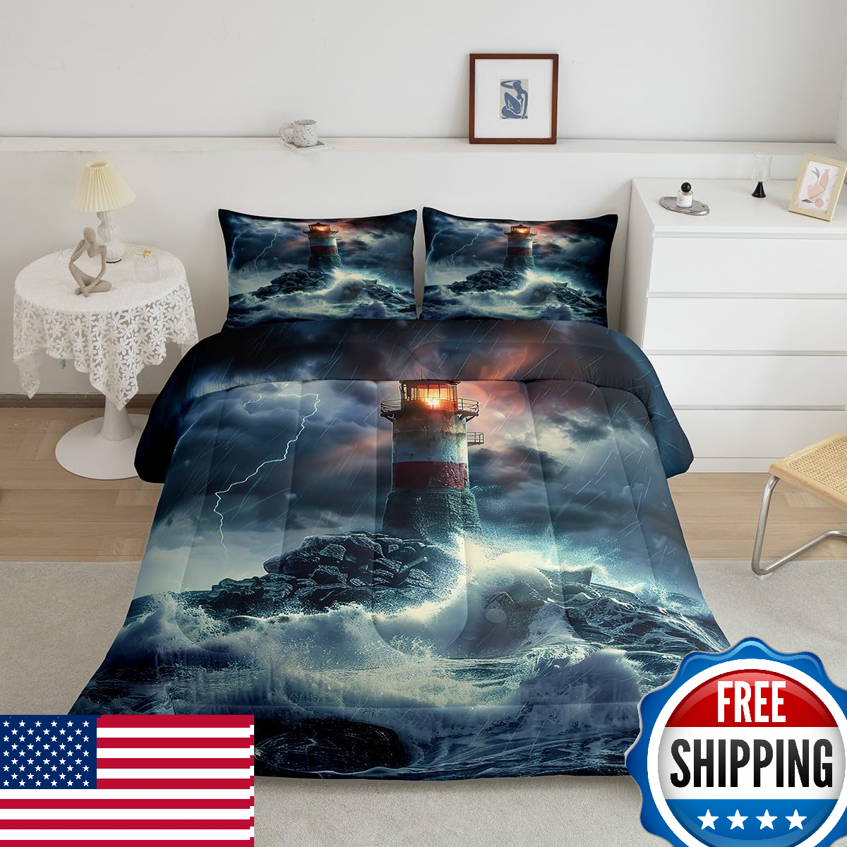 Feelyou Ocean Lighthouse Nautical Decor Comforter Set Twin Full King Queen Size