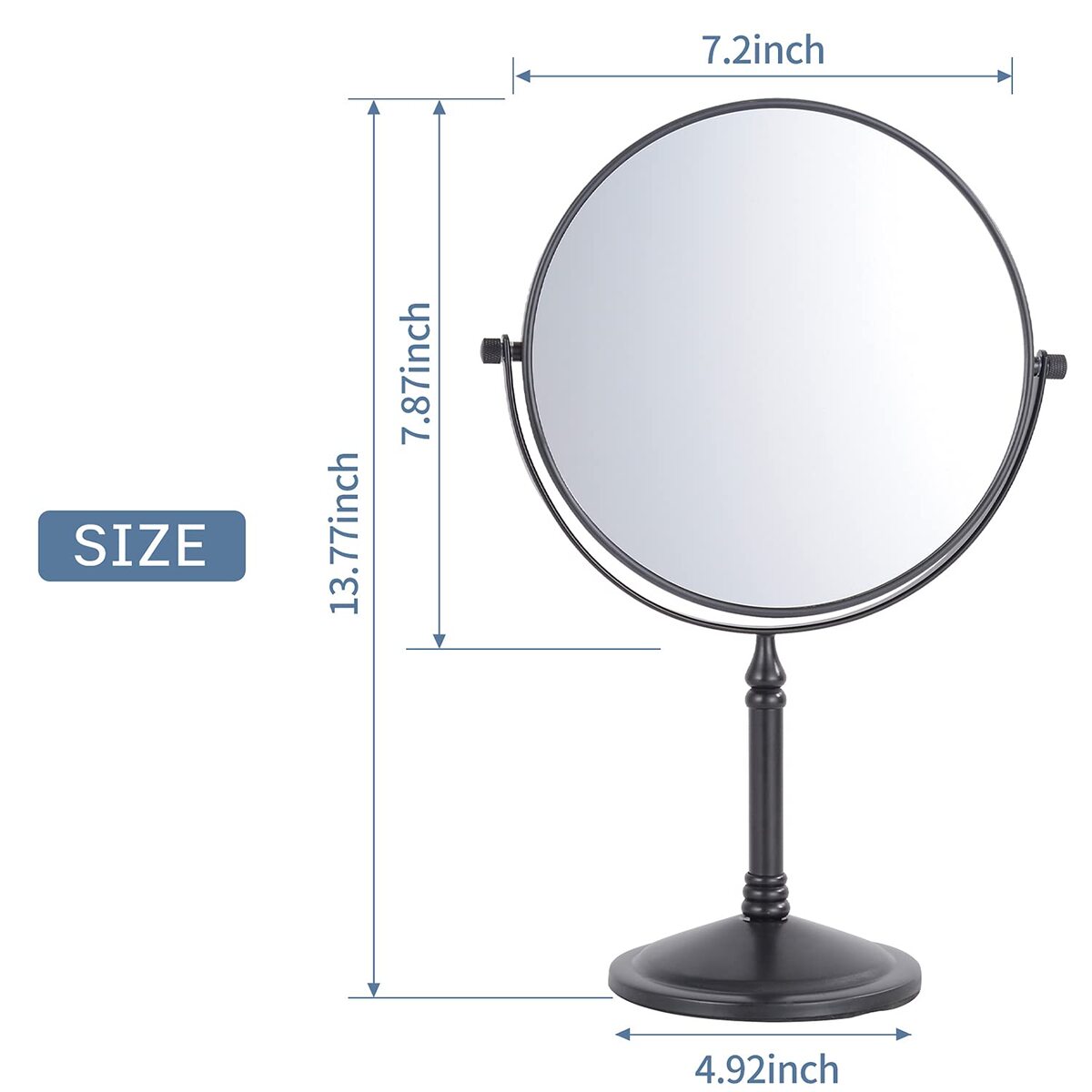 ?High quality material?Made of high quality Brass and 304 stainless steel material,high corrosion resistance and rust resistance make it be a guarantee for long service life.,?10x magnification?1x and 10x double-sides mirror can magnify your face detail clearly,meet all your make-up requirements.,?Move freely?Tabletop make-up mirror can move freely,don't need to punch holes in the wall or install on the fixed position.,?Travel friend?The compact size can save space and portable for travel,will make you same delicate as usual during the trip.,?Better after-sales service?We have focused on products quality,1-year limited warranty can provide customers better after-sales service.