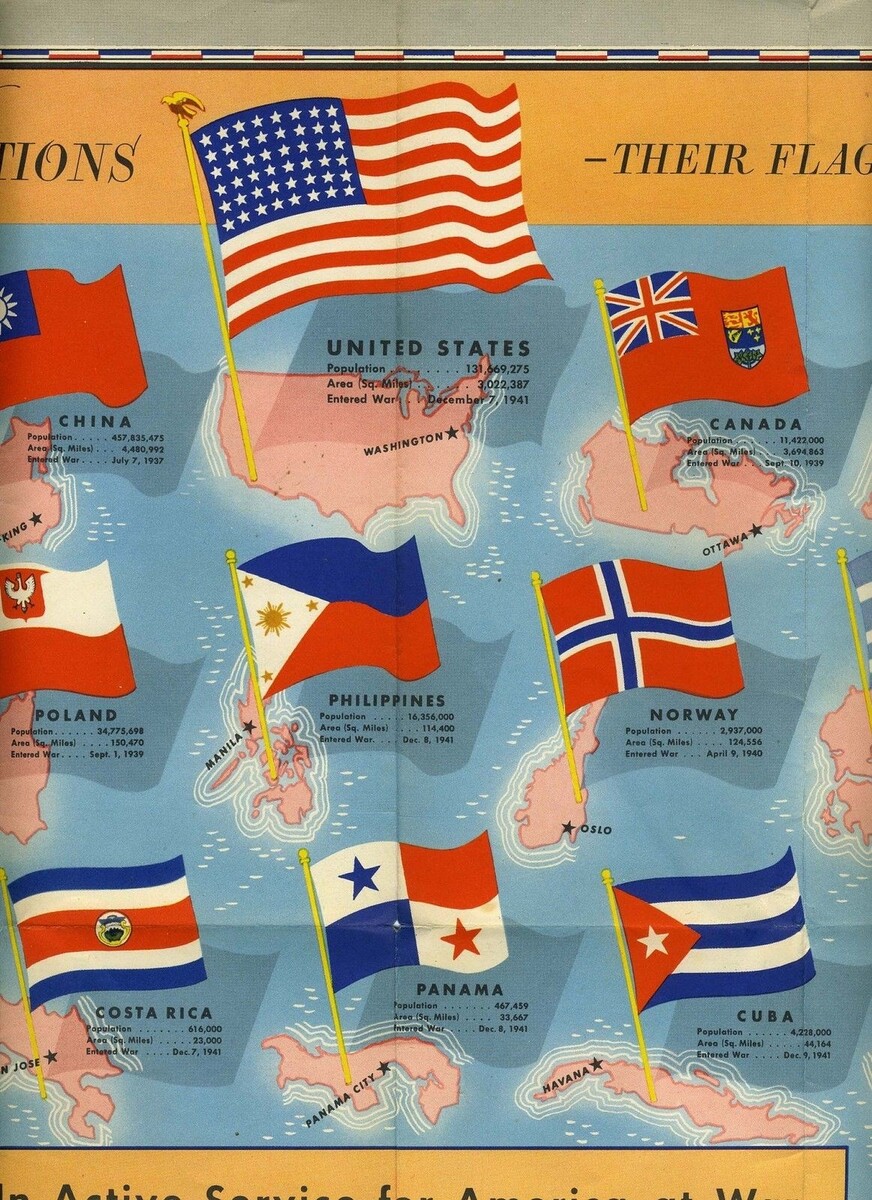 Greyhound Lines Know Your Army Navy Ranks Flags of the United Nations 1942