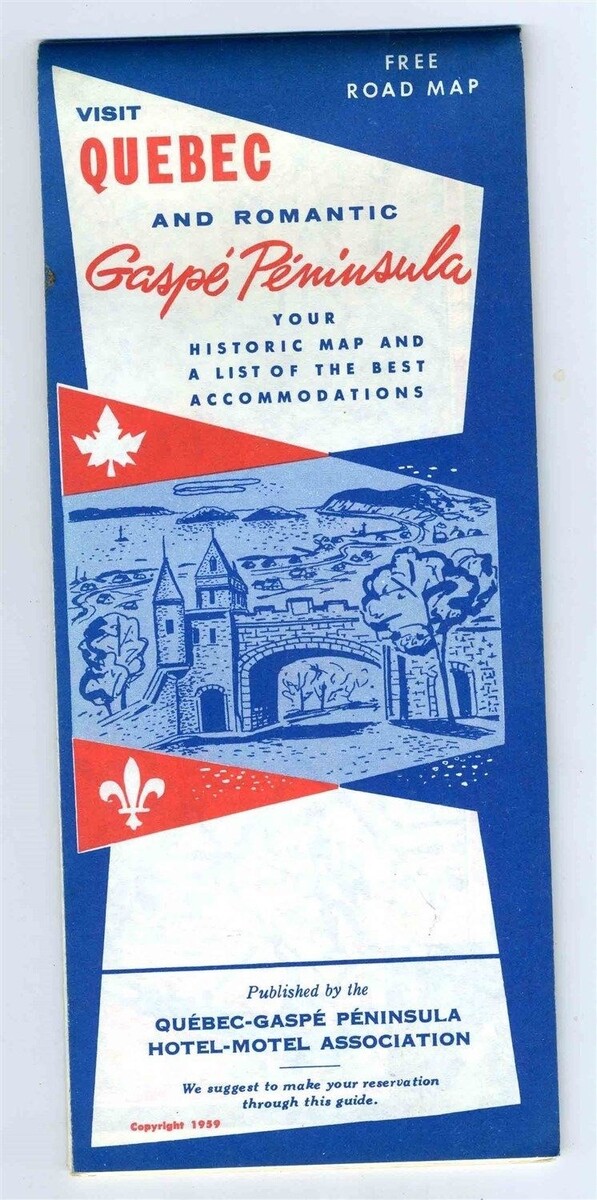 Visit Quebec And Romantic Gaspe Peninsula Historic Map & Accommodations 1959
