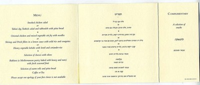 British Airways Club Europe Hebrew & English Menu Israel