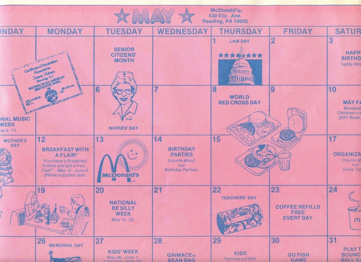 McDonald's May 1980 Placemat Reading Pennsylvania