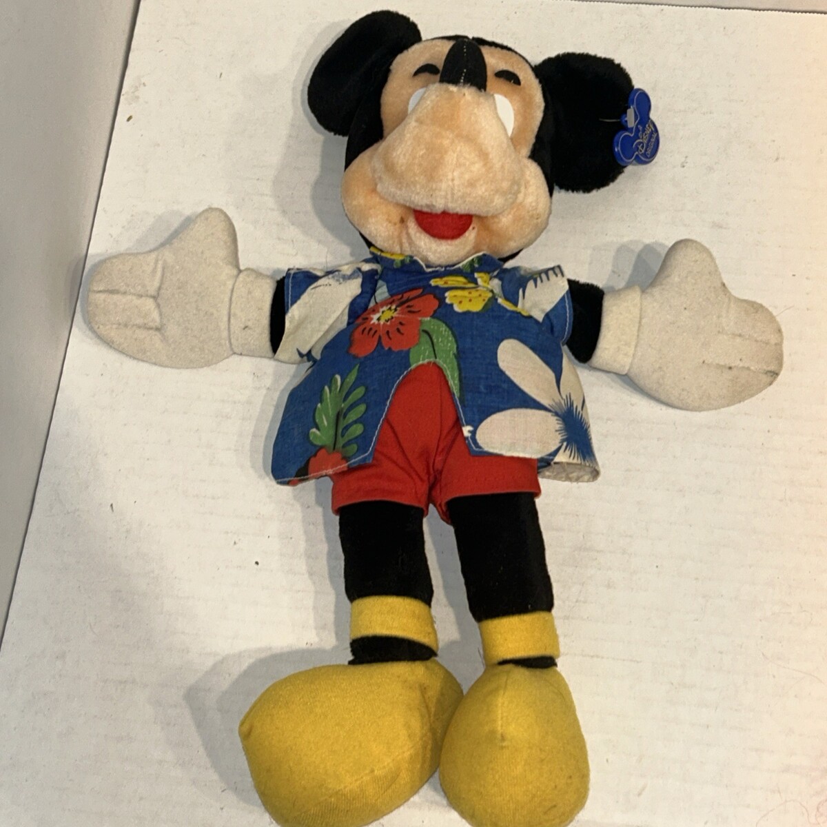 Vintage Disneyland / World Original 16" Mickey Mouse Plush Blue Hawaiian Shirt. Condition is Used. Shipped with USPS Ground Advantage.