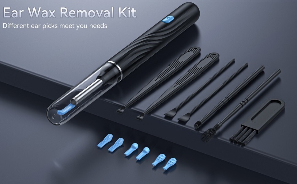 ?Earwax Removal Kit Contains?: 1080P HD Ear Cleaner with Camera*1, Dust Cover*1, Removable metal Ear Spoon*1, Silicone Ear Spoon Covers*6, Silicone Ear Spoon Cover Storage Bottle*1, Traditional Ear Care Kits*5, Cleaning Brush*1, Charging Cable*1, Instruction Manual*1