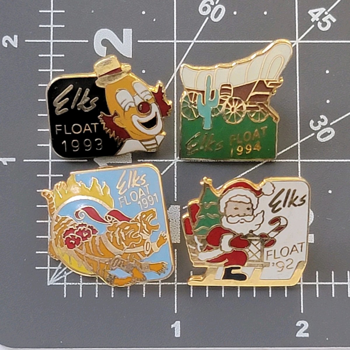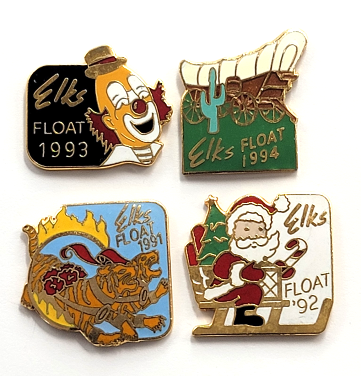 Lot 4 Elks Float Parade Pins 1991-94 Tigers Santa Claus Clown Covered Wagon VTG