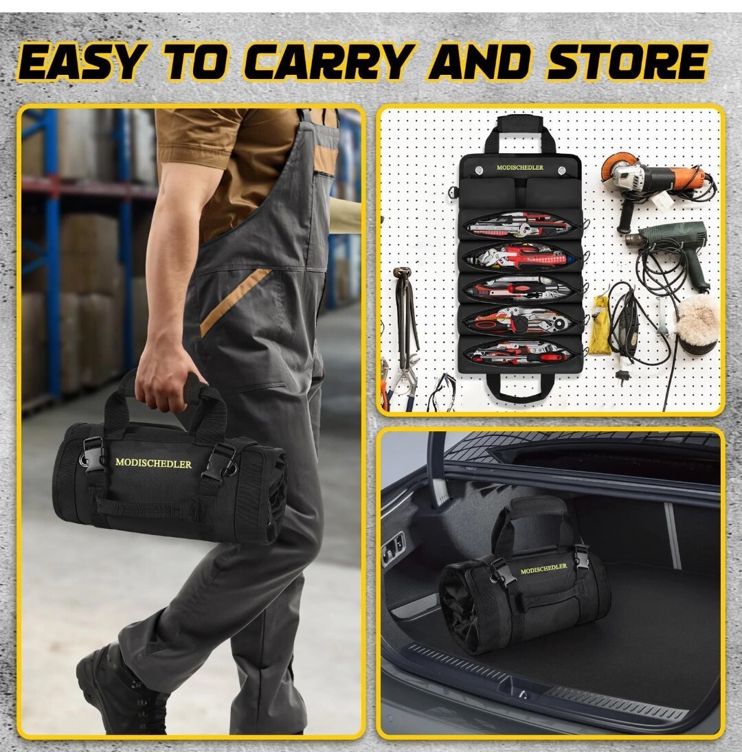 Tool Roll Bag Expanded 5 Compartments and 2 Removable Bags Portable