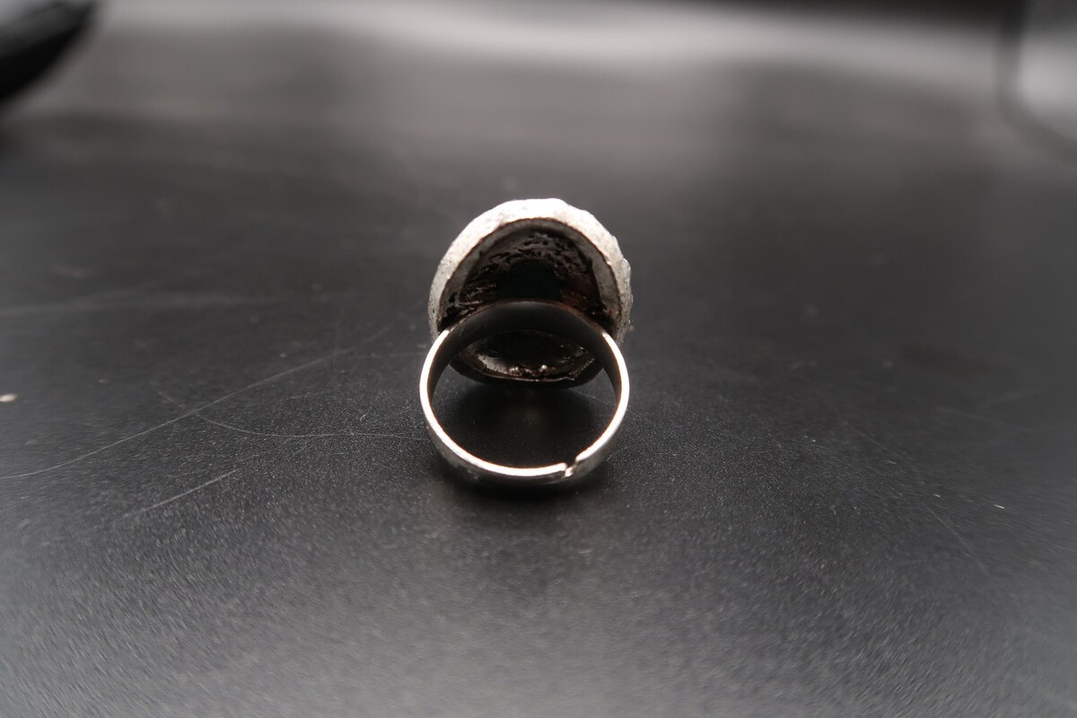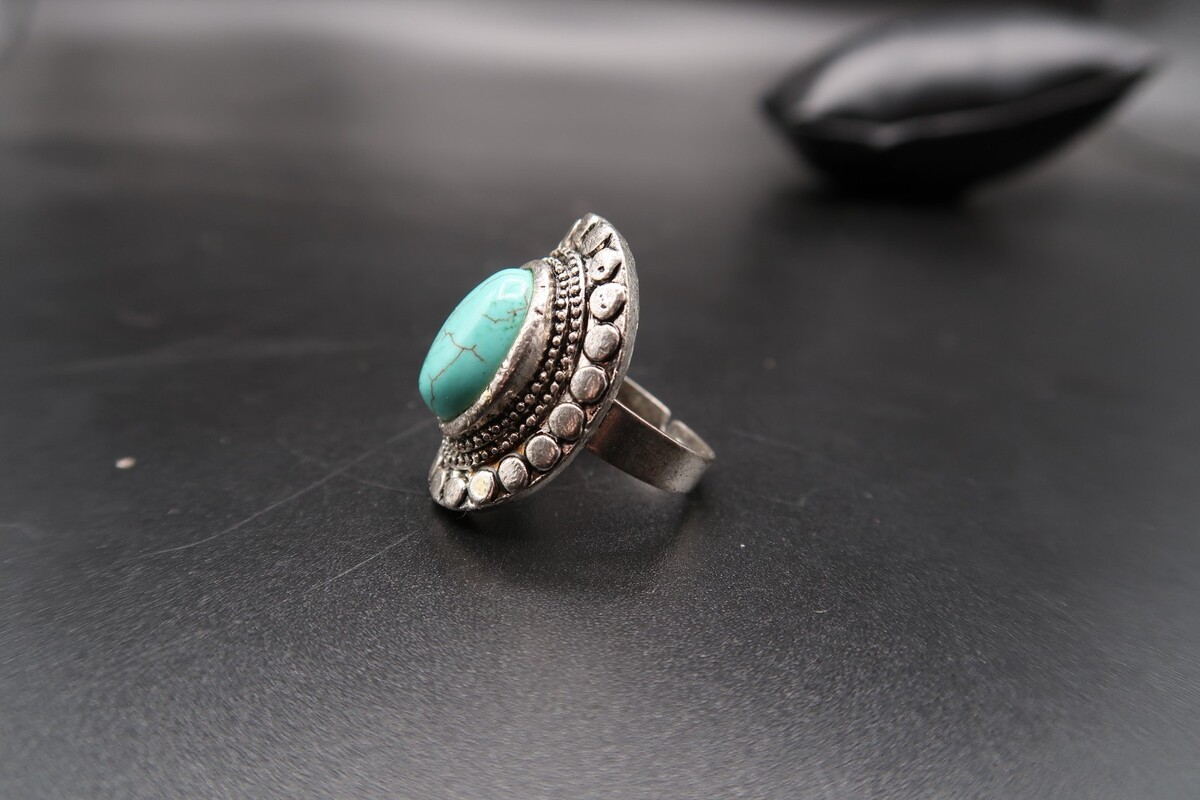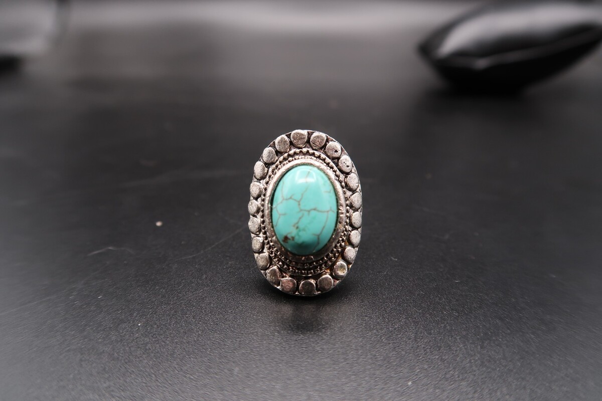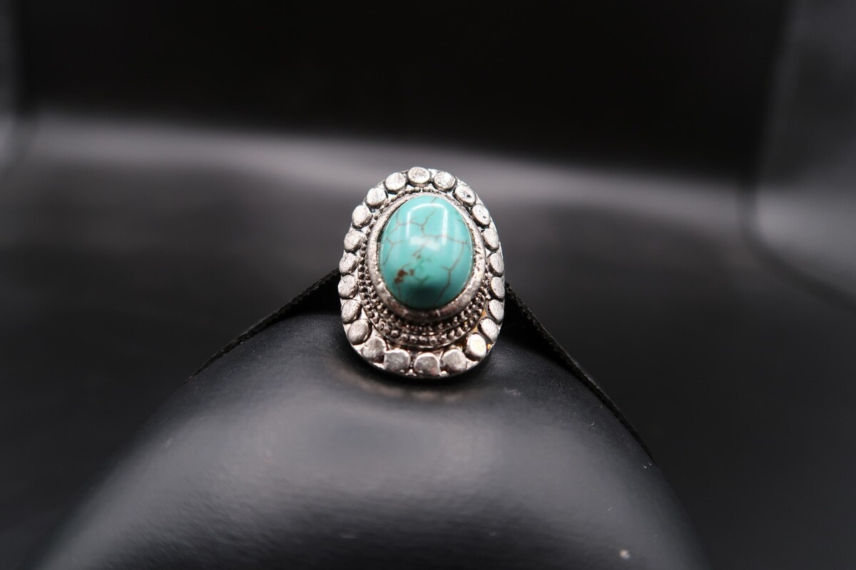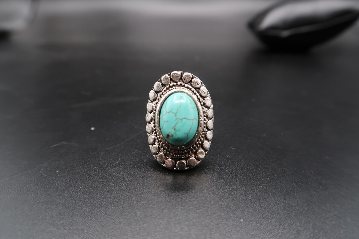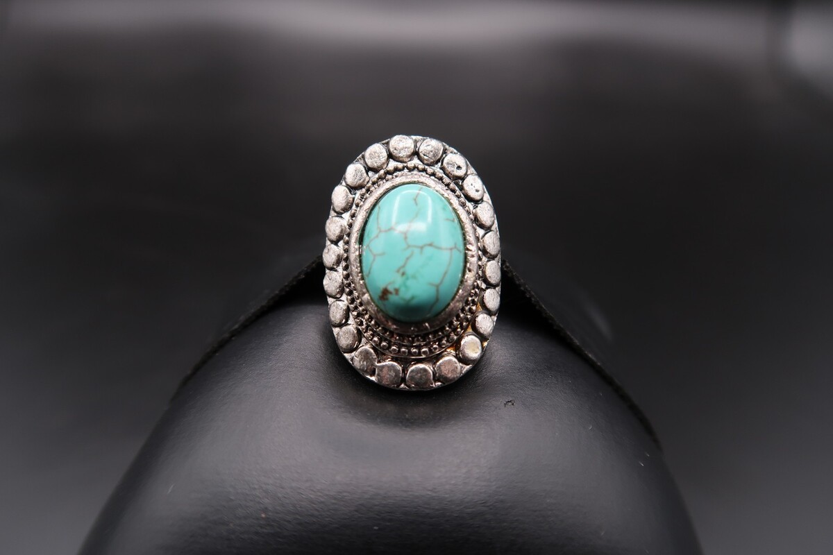 Vtg Silver Tone Southwest Ring Green Turqouise Howlite Oval Cabachon Adjustable