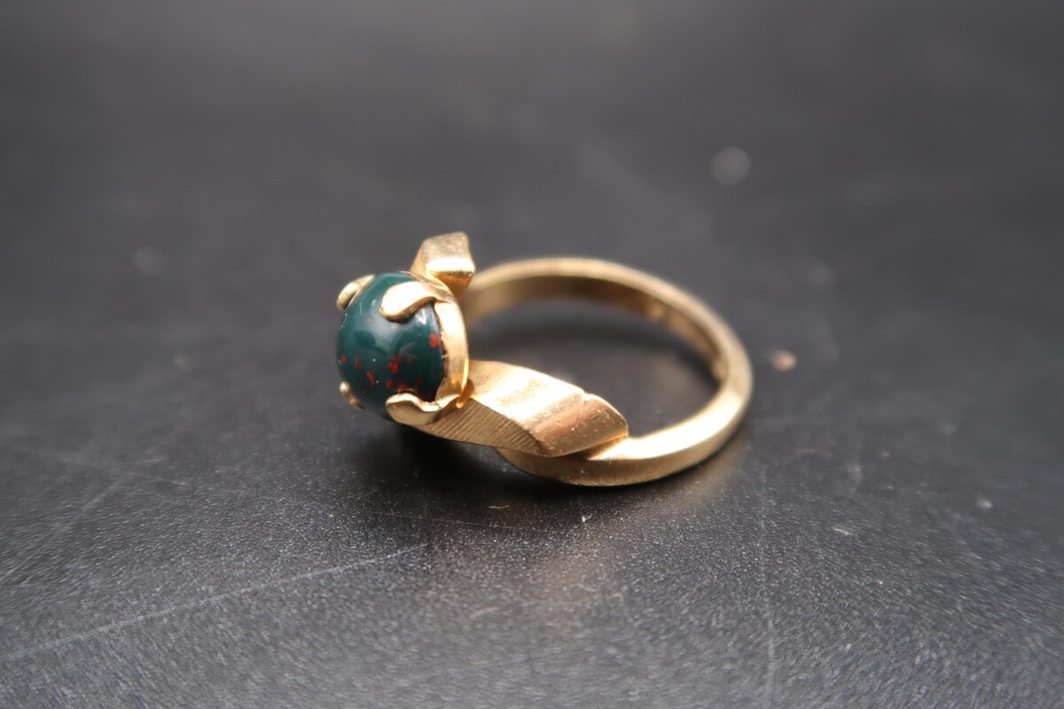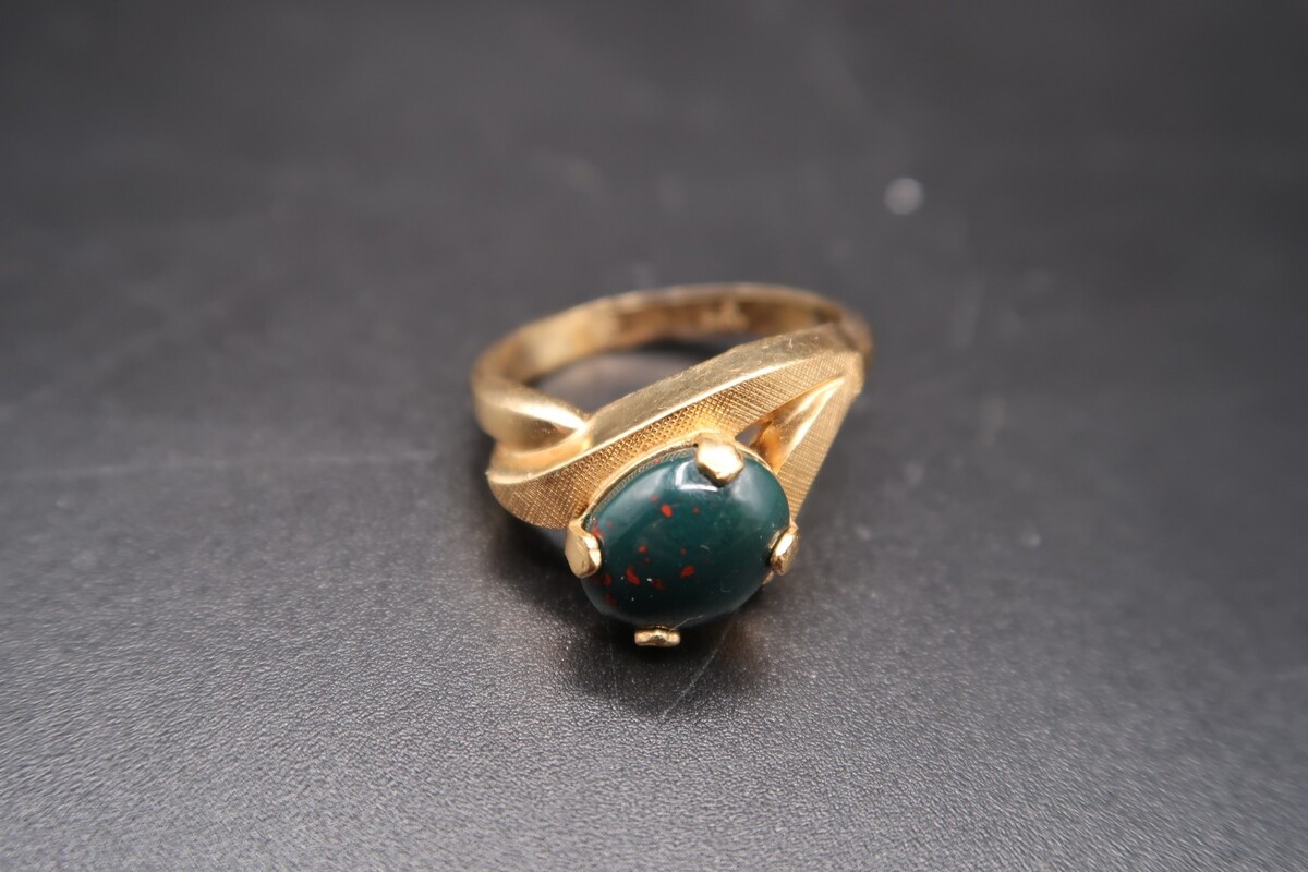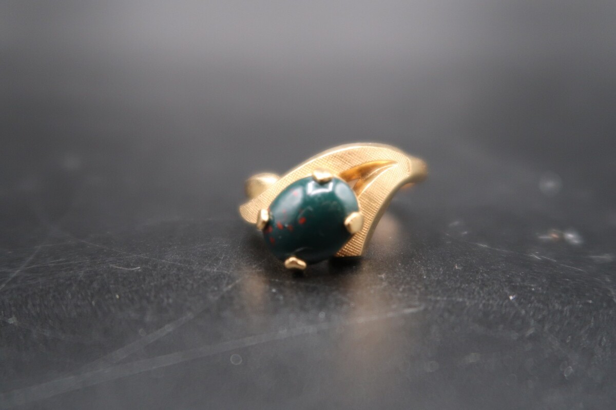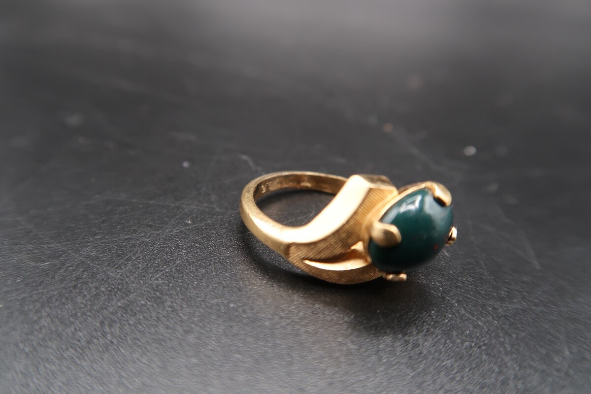Vtg 10KT Gold Fill Ring w/ Oval Green Bloodstone Cabachon Adjustable Signed Rare