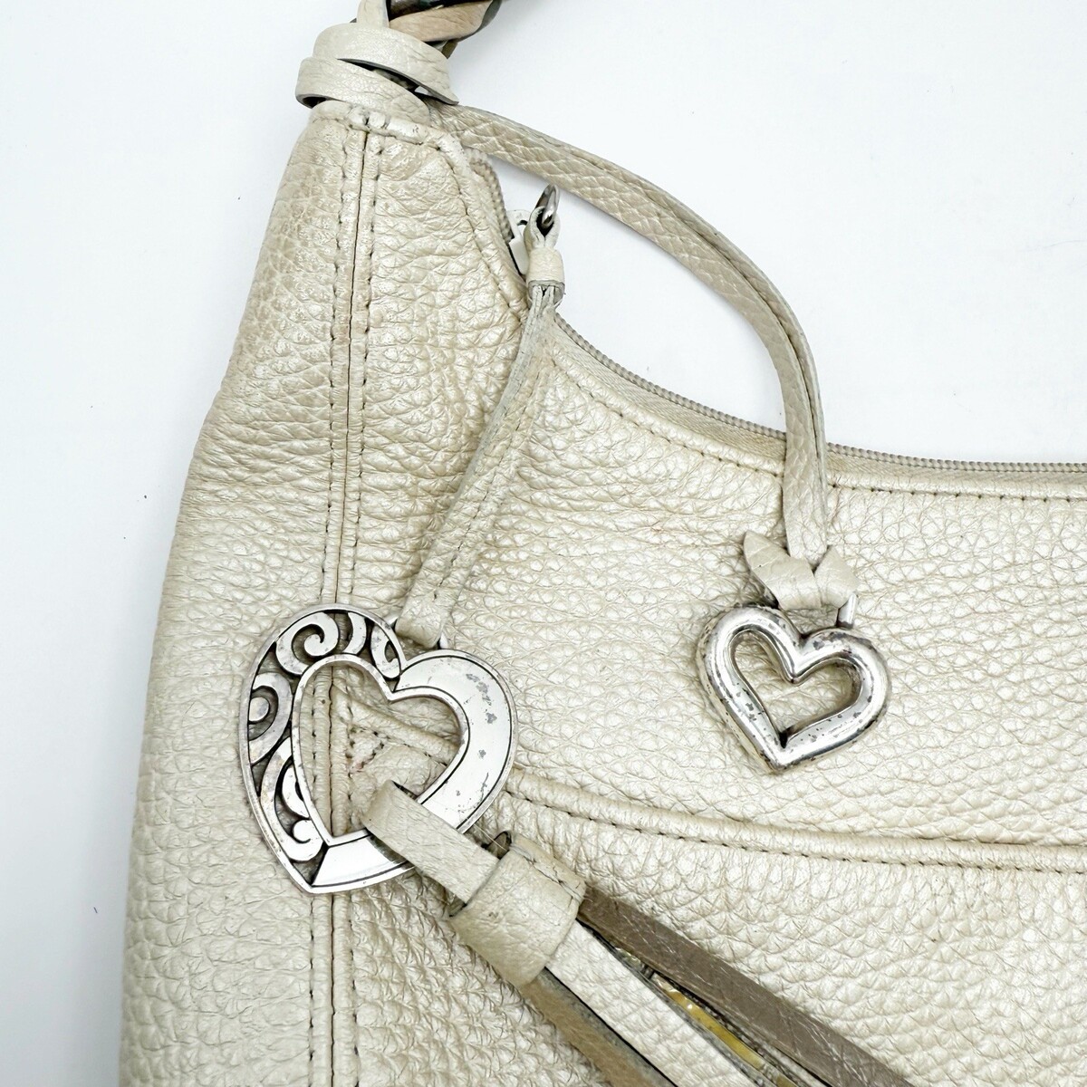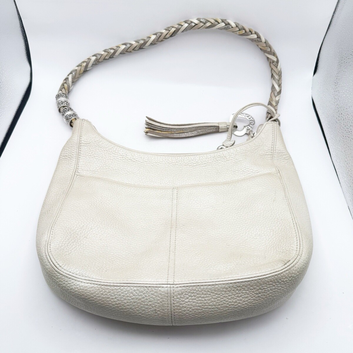 Brighton Barbados Hobo Bag Purse Handbag Cream White Leather Bright Multi Braid