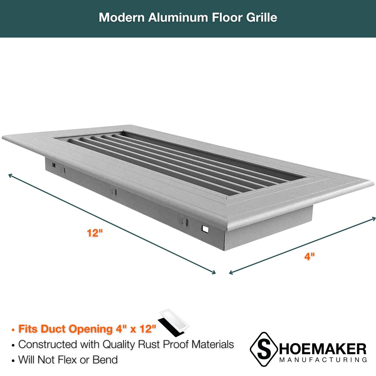 Shoemaker Mfg, Cement Gray, 4x12, Premium Modern Aluminum Floor Grille
