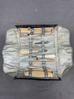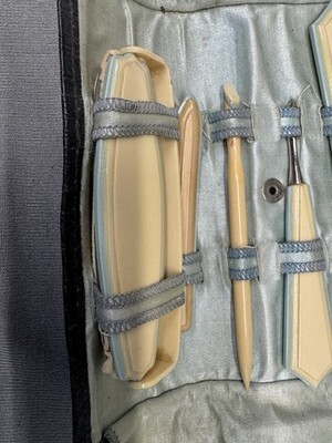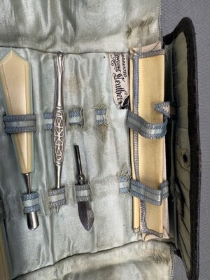Antique Leather Roll Up Case Travel Manicure Set Celluloid Pyralin Ivorine Class