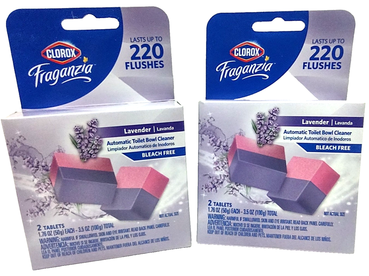 ( Lot of 2 ) Clorox Fraganzia Automatic Toilet Bowl Cleaner Bleach Free LAVENDER SCENT - LASTS 220 Flushes