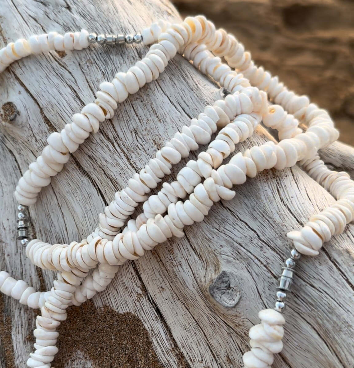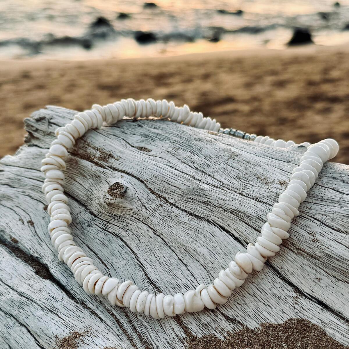 Rock the beach vibe every day with our cool Puka Shell Choker. Straight from the shore to your neck, this choker's real puka shells add a splash of ocean love to any outfit, making it the ultimate accessory for beach lovers. It's easy to wear with a twist barrel clasp ensuring a secure fit. Perfect for layering or wearing solo, it's a must-have for those casual days when you still want to make a statement. Plus, it?s eco-friendly, so you're doing good while looking great. Dive into style with our Puka Shell Choker and keep the beach vibes going all year round. Approximately 16", 18", 20" or 24" in length. The shells vary in size from about 6-9 mm. We string these here in Maui using real shells from the Philippines, so no two are alike. Prices are based on the shell quality for each length, so some shorter ones may be more than longer, etc.