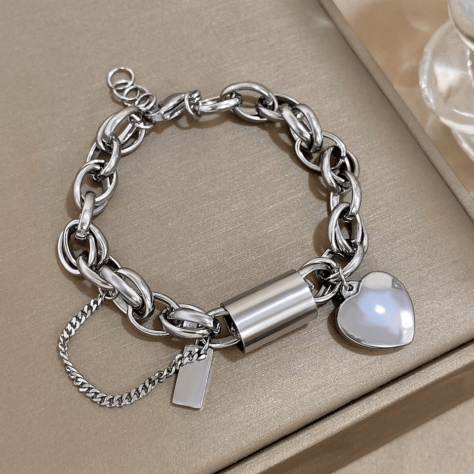 Heart Lock Stainless Steel Charm Bracelet and similar items