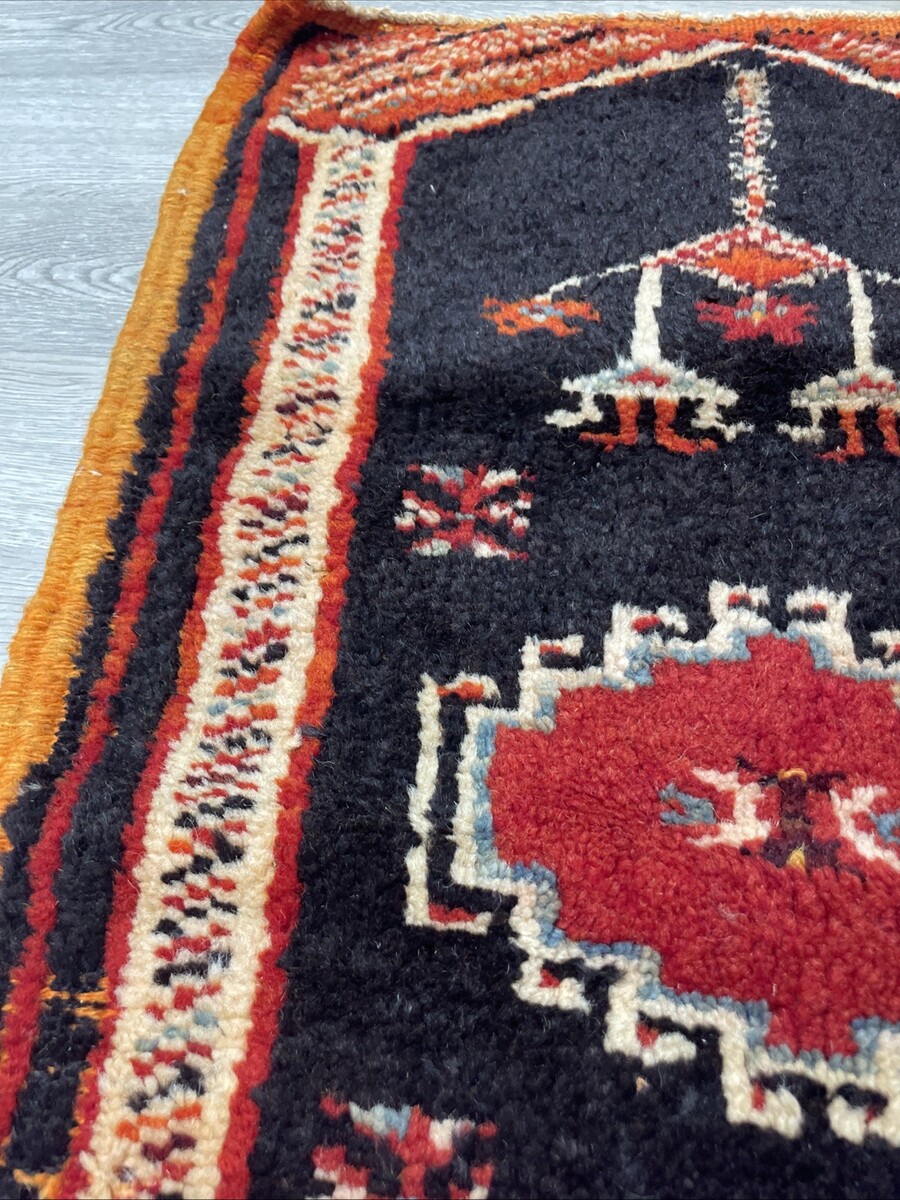 Vintage Turkish Hand Woven Knotted Prayer Rug Orange KG JD