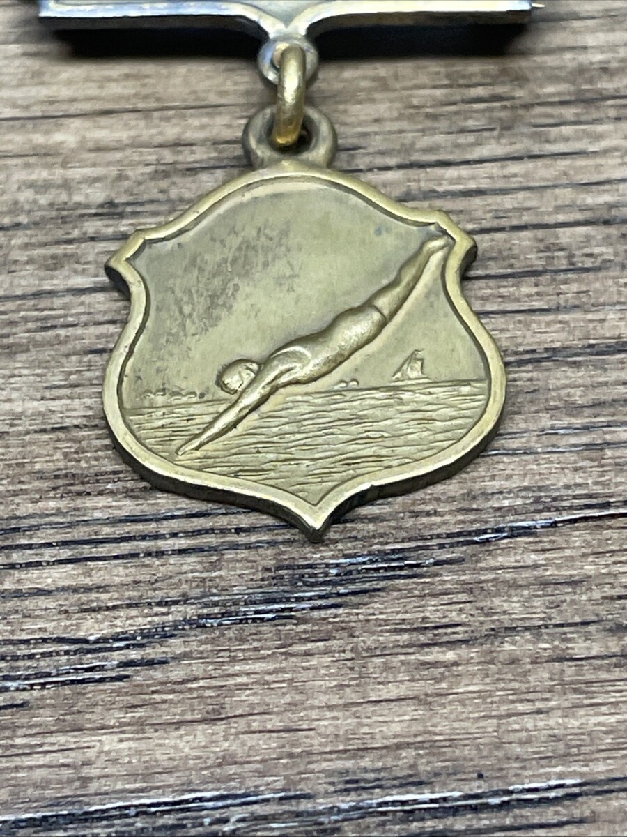 City Championship Free Style Swimming Award 1943 Antique Medal Charm LG JD