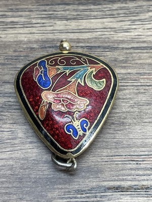 Vintage Cloisonne Enamel Maroon Floral Double Sided Pendant Charm Estate Find KG