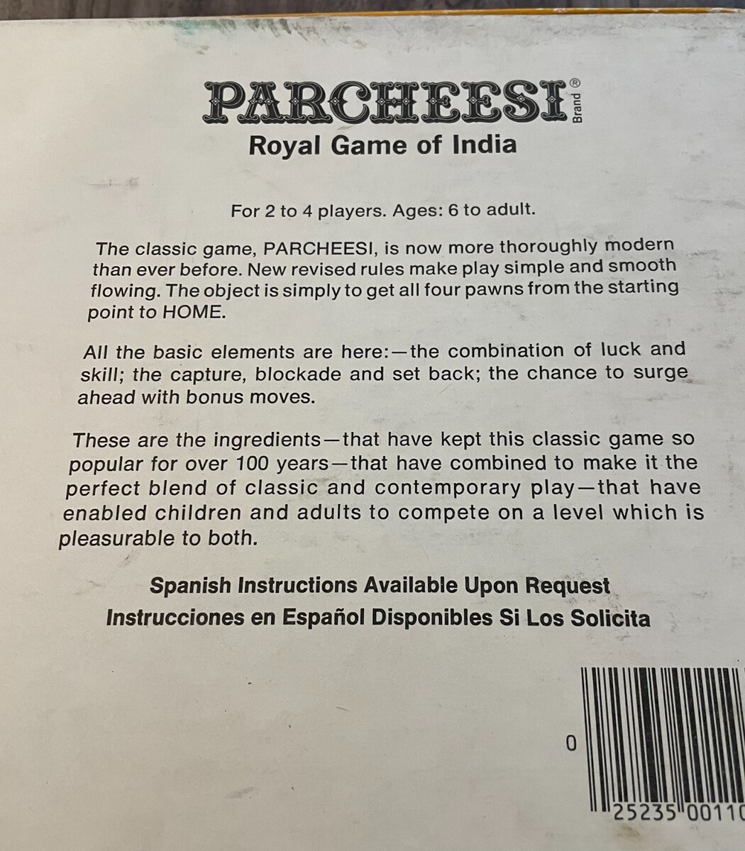 Vintage 1982 Selchow & Righter PARCHEESI Royal Game Of India Board Game 1980s