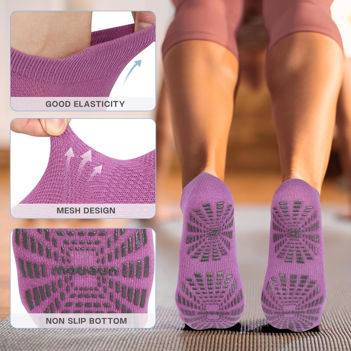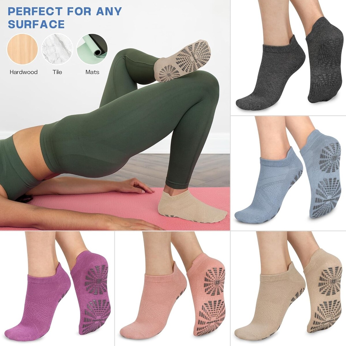 Safe and Stylish 5-Pair Non-Slip Socks for Yoga and Pilates