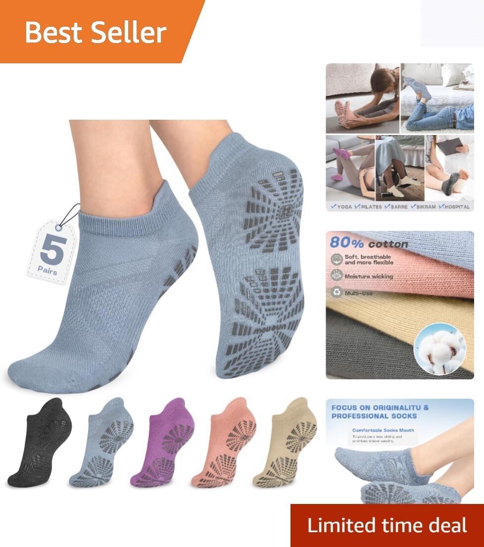 Safe and Stylish 5-Pair Non-Slip Socks for Yoga and Pilates - Gift Ready!