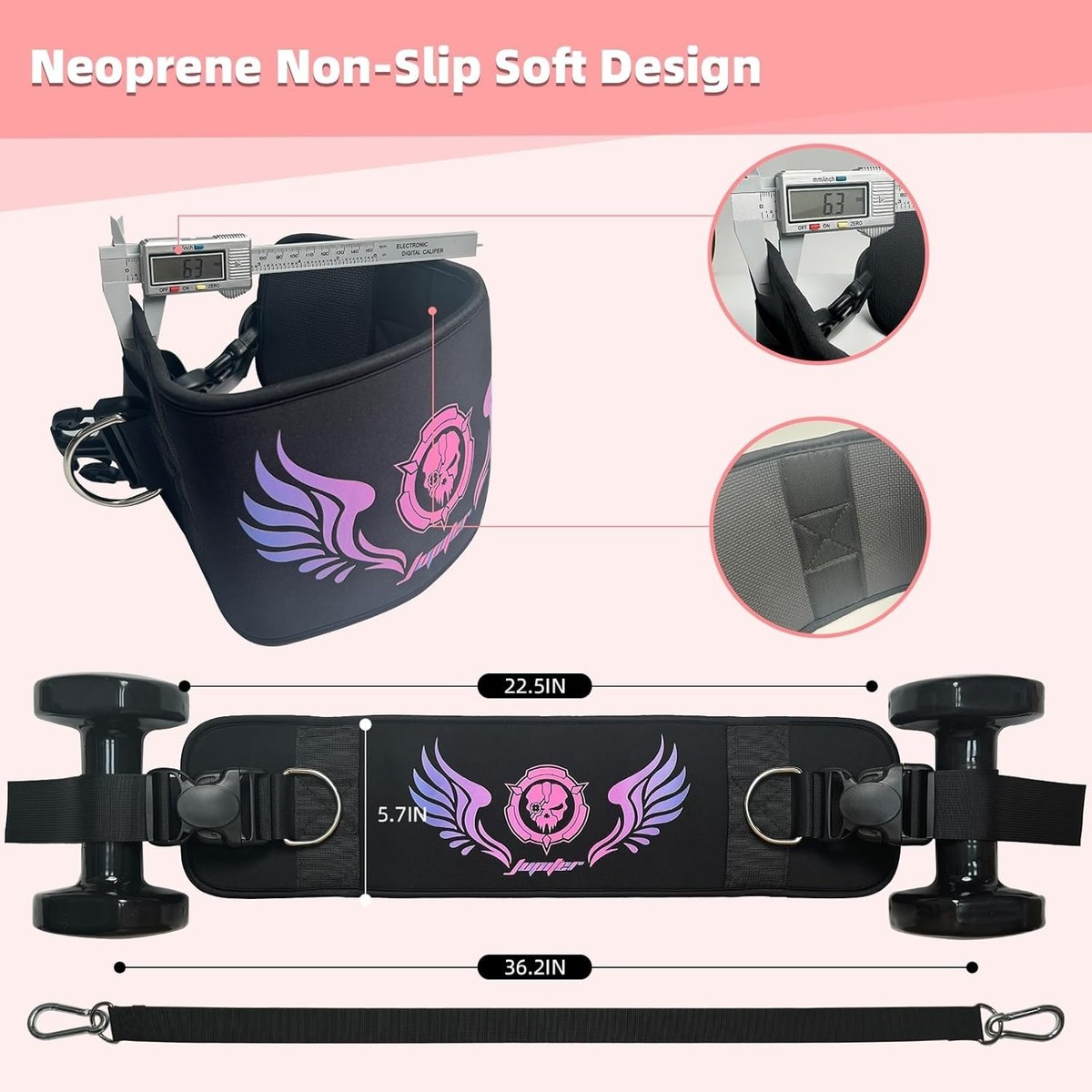 If you are serious about your fitness, this is the belt you need. Its multi-functionality allows for comprehensive glute training as well as weighted pull-ups and dips, supporting up to 300 lbs. Made with quality materials and designed for comfort and ease, you can focus on your workout, not adjusting your gear. The lightweight and portable design make it an essential addition to your fitness regimen?wherever you go, this belt goes with you.
