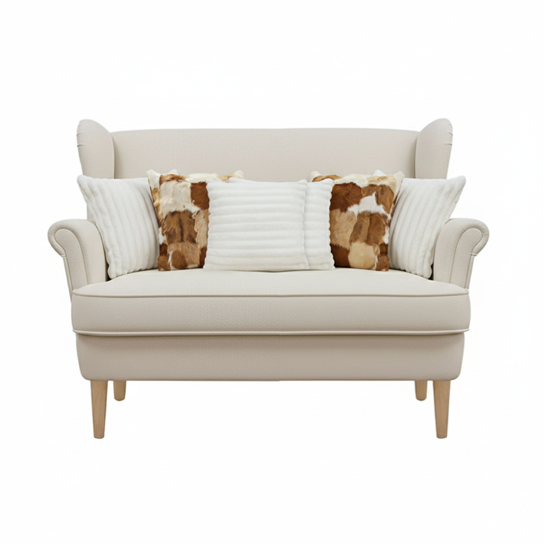 Rustic Elegant Design: Cowhide patchwork combined with white textured fabric creates a chic, contemporary, and versatile décor accent.