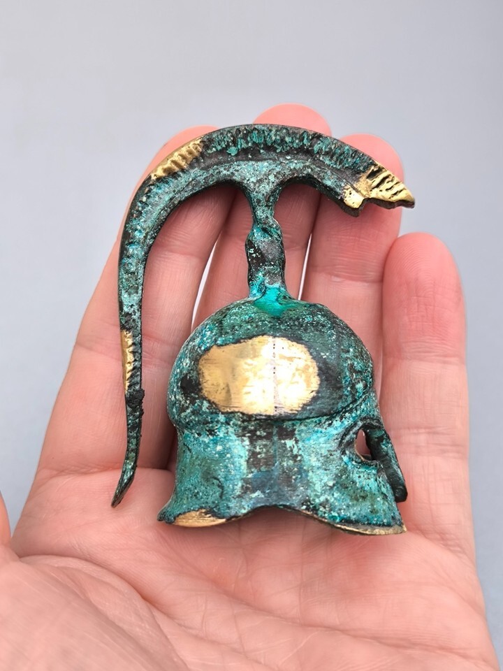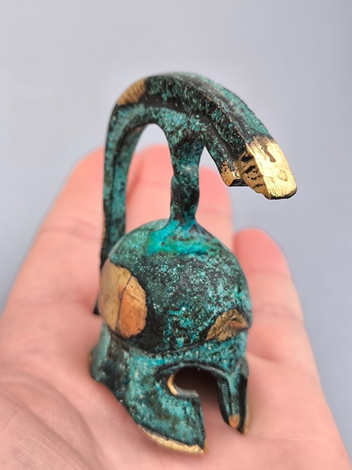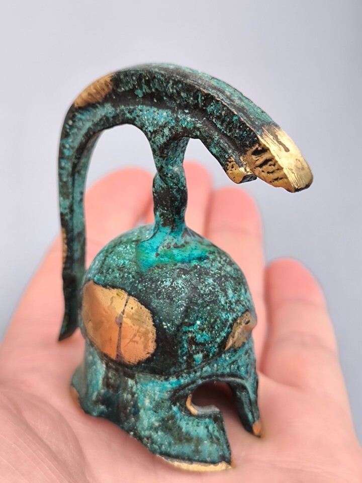 Ancient Greek Miniature Spartan Helmet - Thespian Type - Warrior - Classic Period - Bronze Handmade