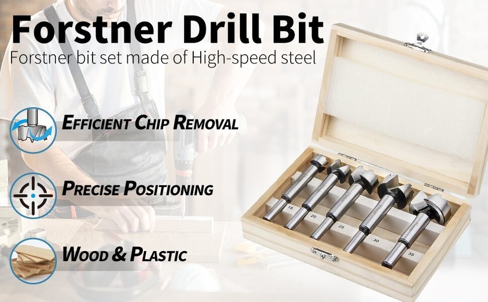 QUALITY CONSTRUCTION - Forstner Bit Set is Made of High Speed Carbon Steel, Sizes Included: 15mm, 20mm, 25mm, 30mm, 35mm with Cylindrical Shank, Total Length 90mm. Suitable for all drill / drivers and drill presses