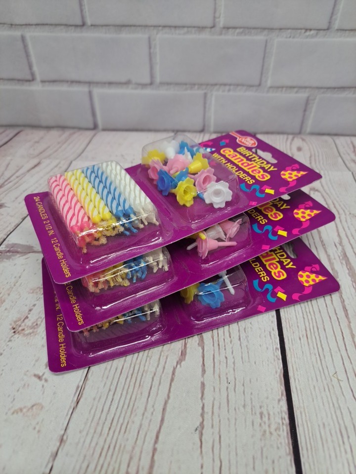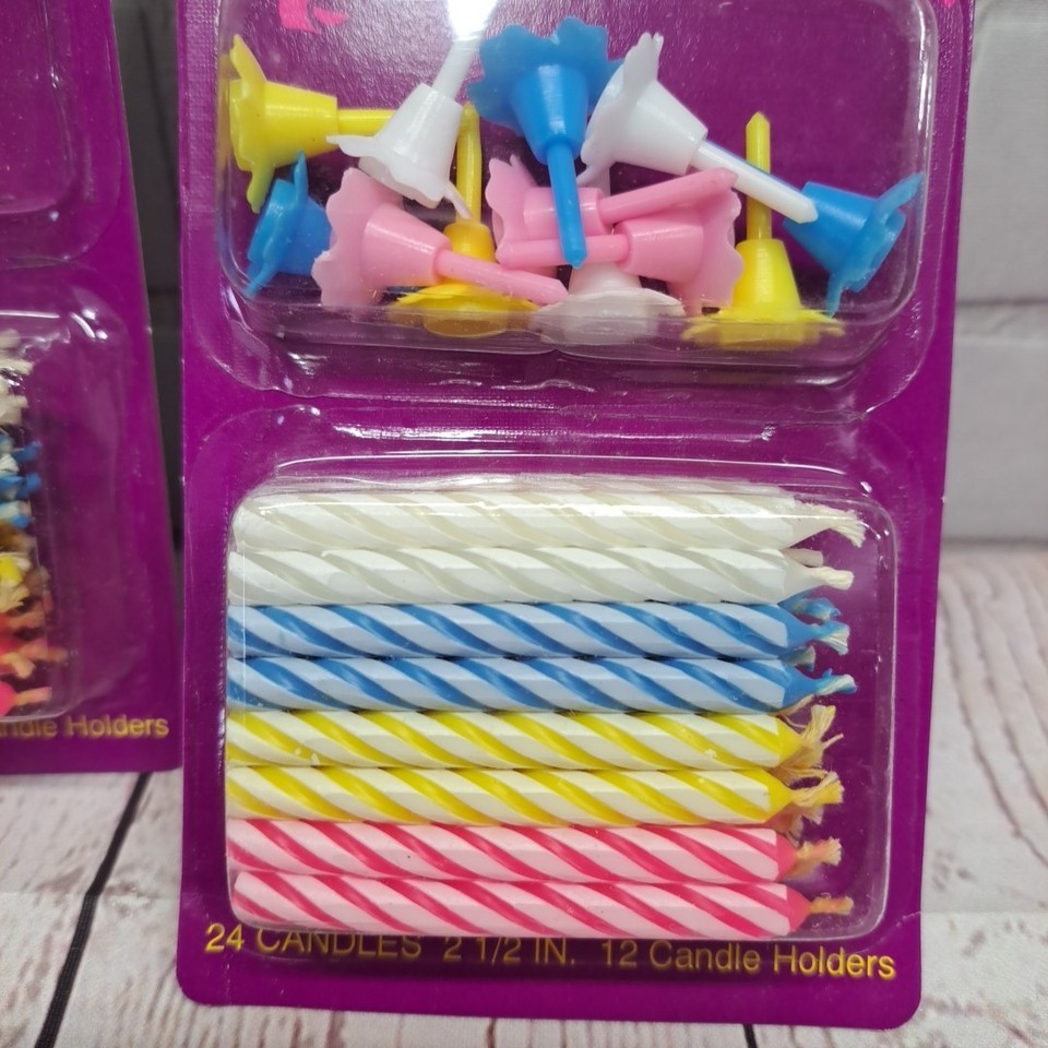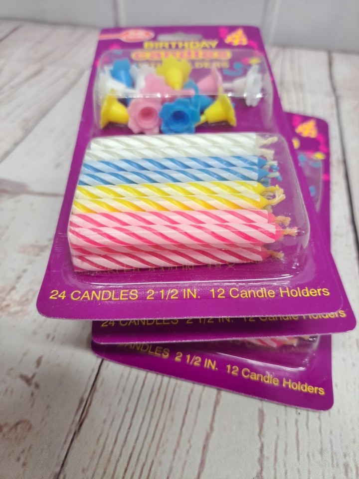 VTG Betty Crocker Birthday Candles With Holders 2.5" Striped Candles Pink Yellow