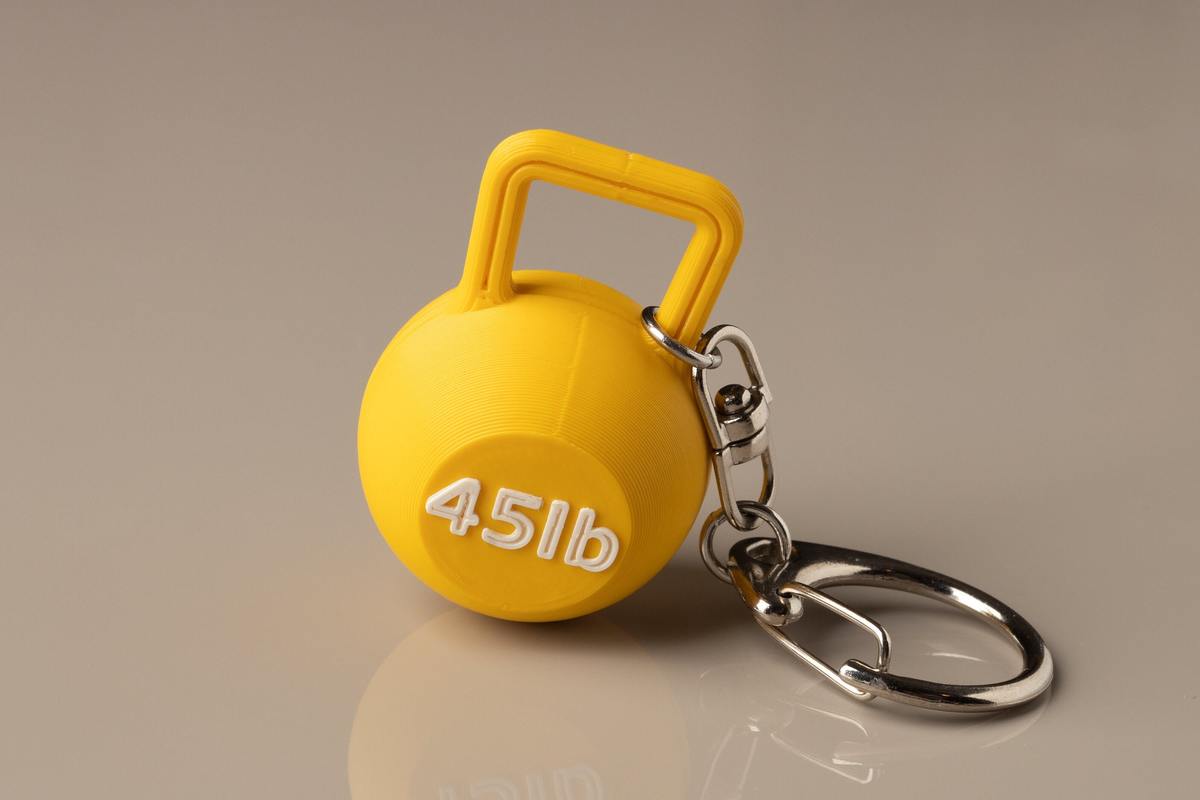 Kettlebell Keychain: 45 lb/kg, 3D Printed Gym Gift, fitness, barbell, workout ac