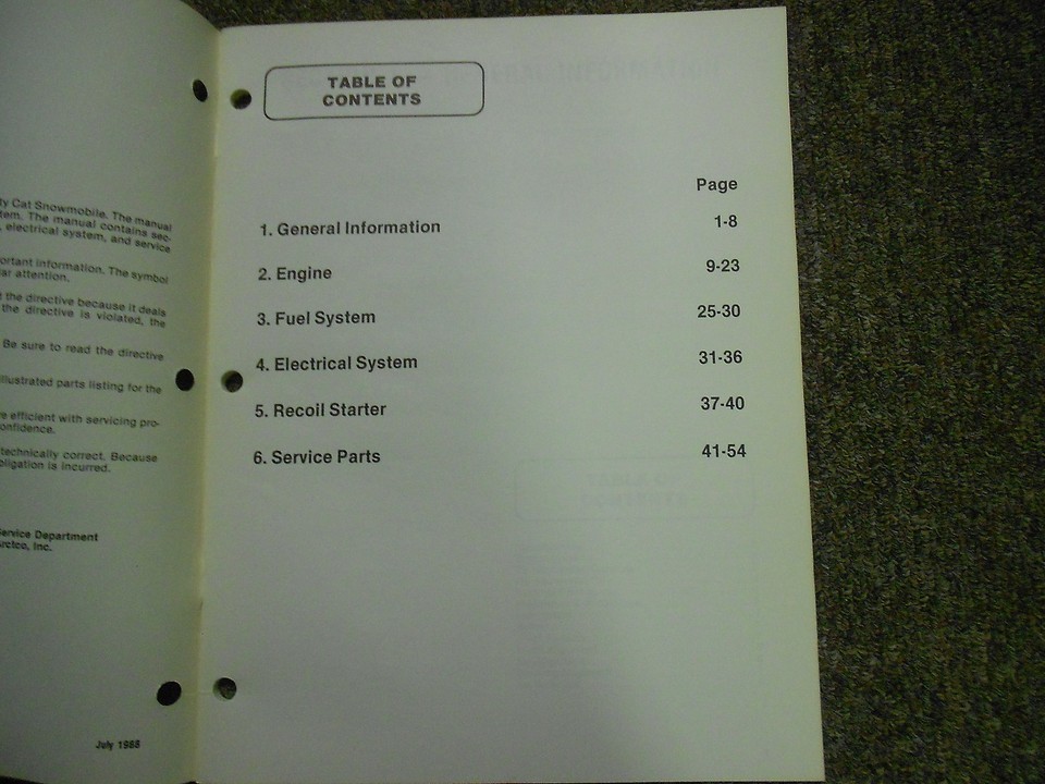 OEM Illustrated Parts and Service Manual 0650-056 Arctic Cat Kitty Cat 1989- ...