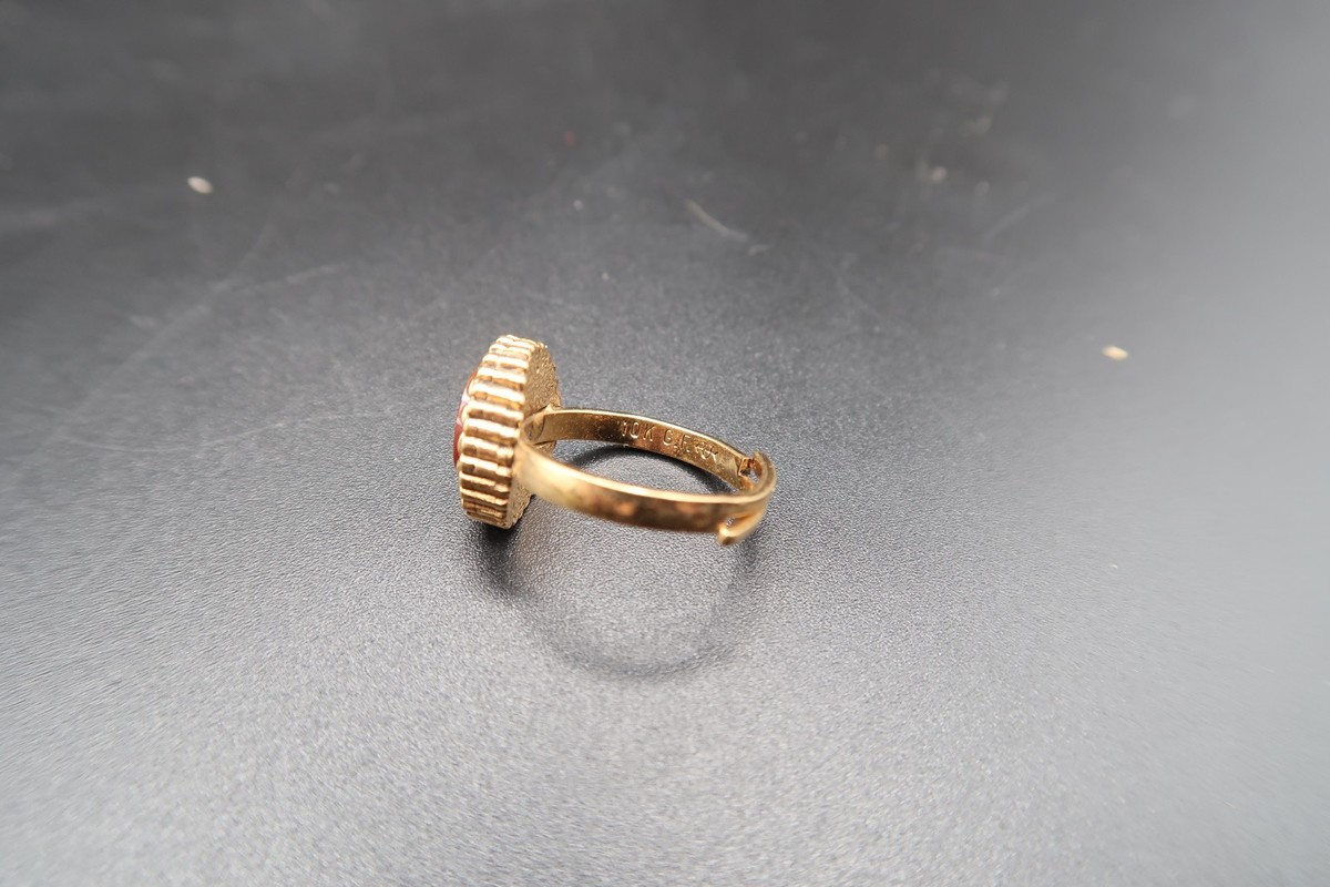 Vtg 10KT Gold Fill Ring w/ Oval Red & White and similar items