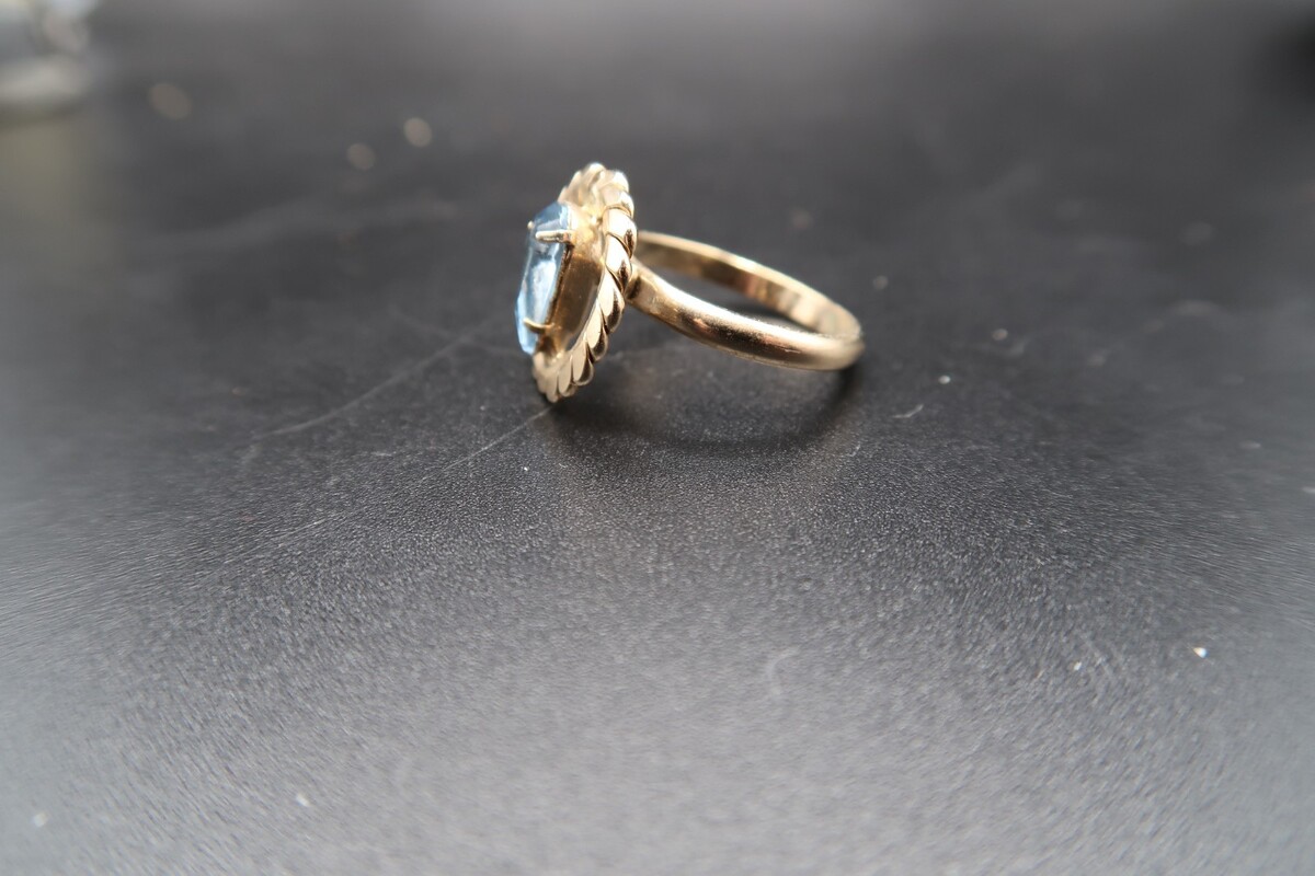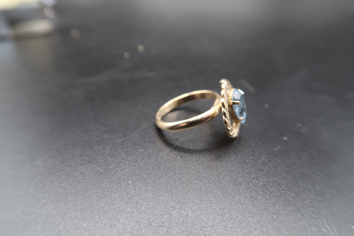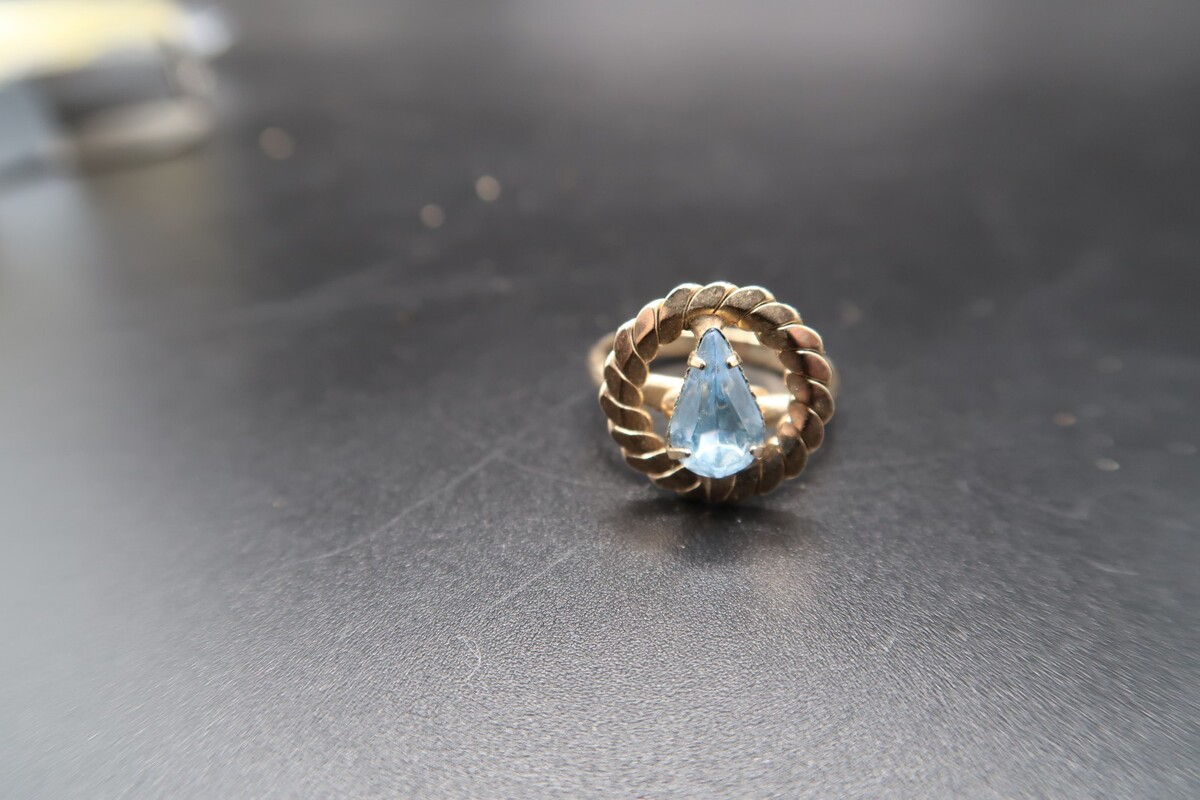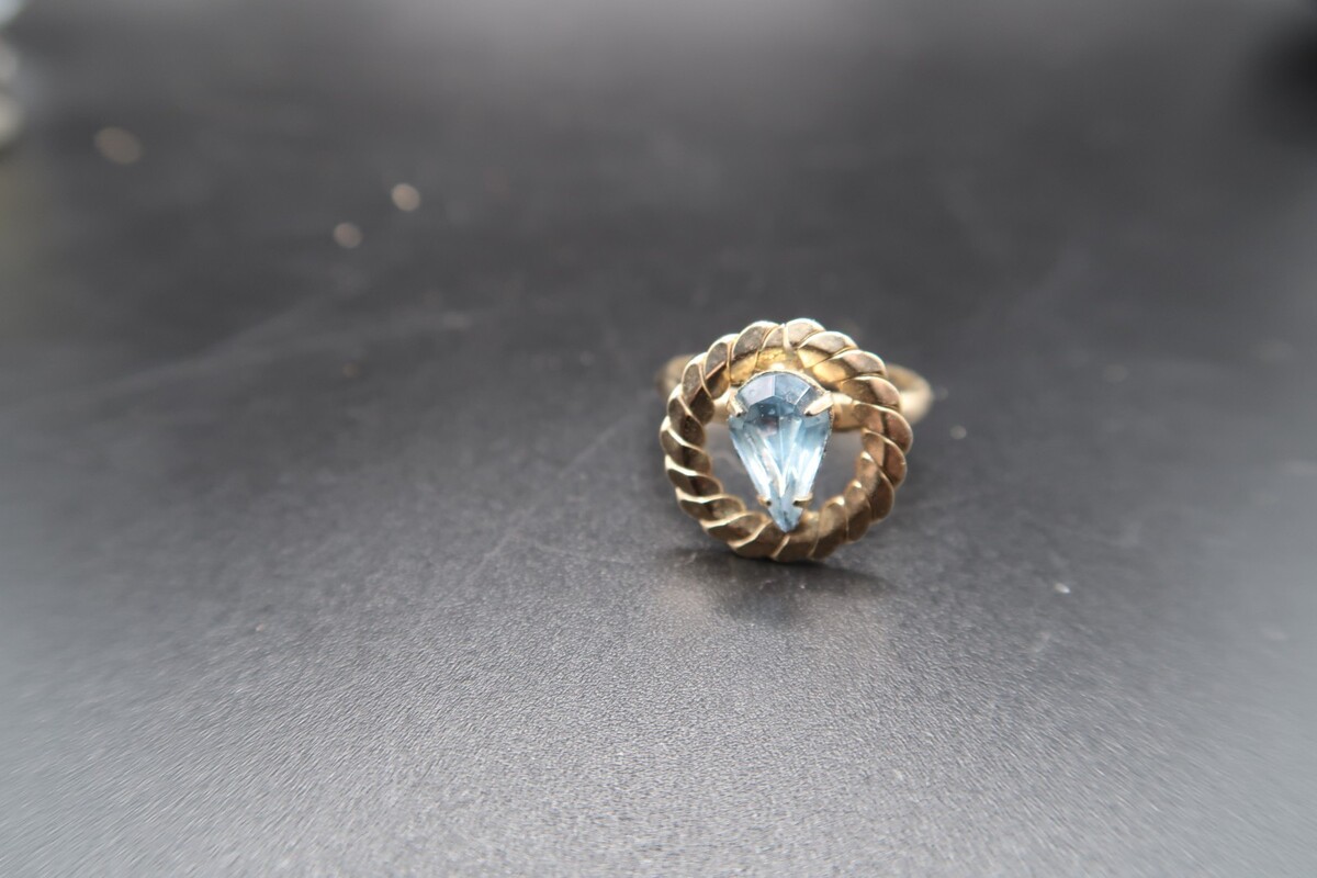 Vtg Gold Tone Adjustable Ring Pear Shape Prong Set Baby Blue Rhinestone