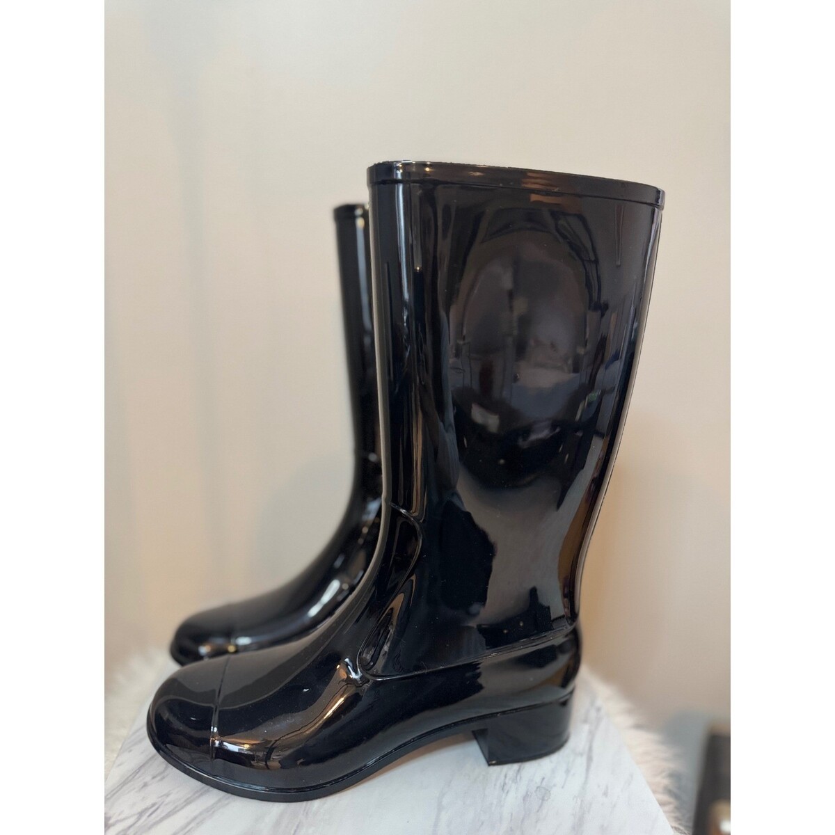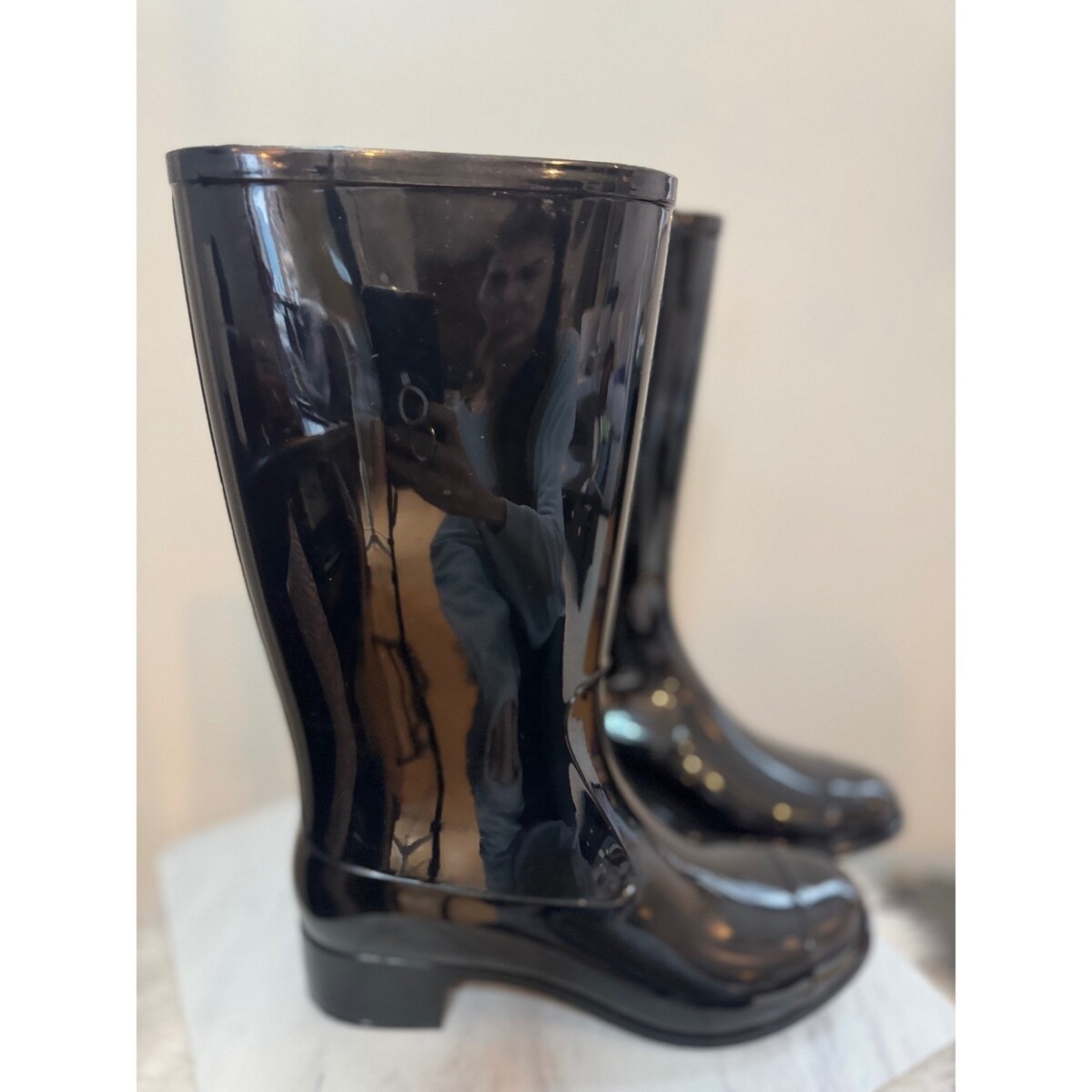 Jeffrey Campbell Showers Waterproof Rain Boot (Women) 8M, Black Gloss, NWT