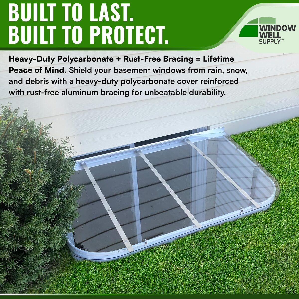Product description: If you have a leaky, cracked, or broken window well cover, Window Well Supply is here to supply you with our premium heavy-duty window well covers. This not only helps to keep objects like debris, leaves, and rainwater out of your window well but also acts as a protective measure to keep you and your family safe. While many of today?s window well covers can?t support very much weight, Window Well Supply builds window well covers to ensure nothing breaks through. Made from highly durable materials, our polycarbonate window well covers are known to withstand all types of weather and damage over time?whether it be from the sun, rain, or snow. When you use a heavy-duty window well cover from Window Well Supply, you can expect the highest-quality egress window well cover possible! Our polycarbonate egress window well covers can be made to fit various sized wells.
