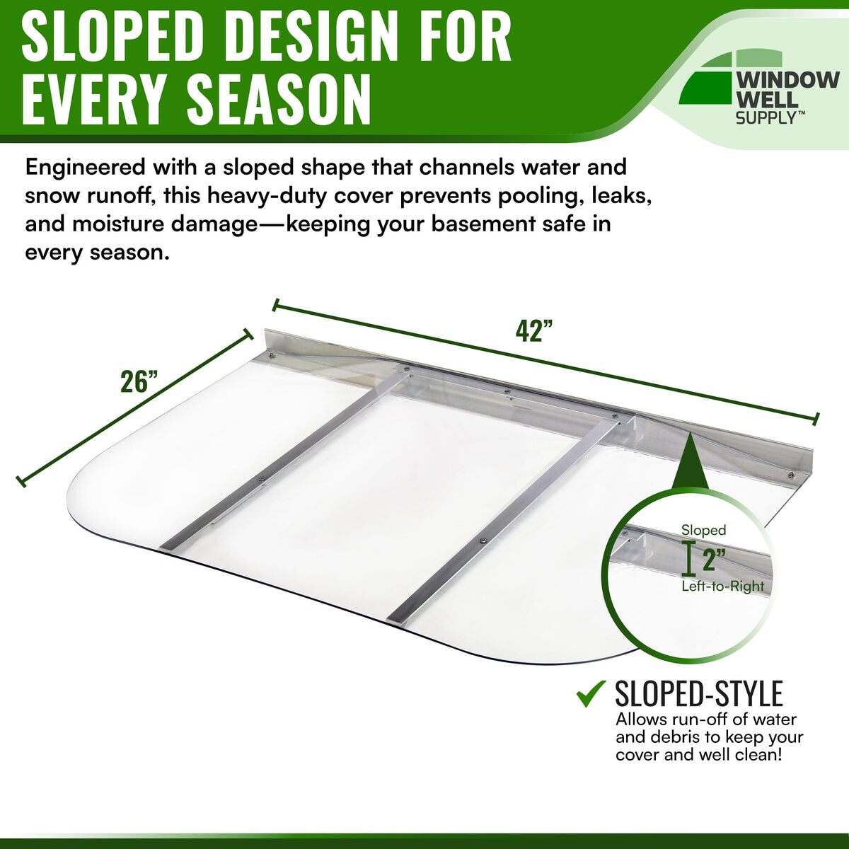 Medium Sloped Clear Polycarbonate Window Well Cover 42" W x 26" L - Heavy Duty B