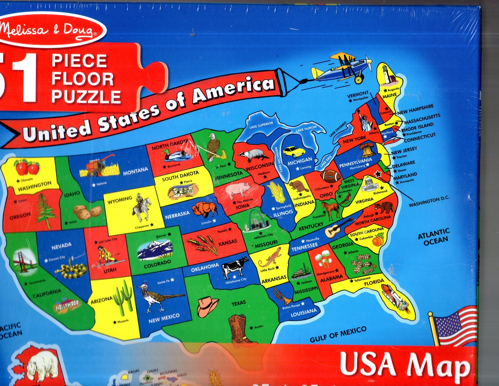 U S A Map 51 piece Floor Puzzle, New | Melissa & Doug for children