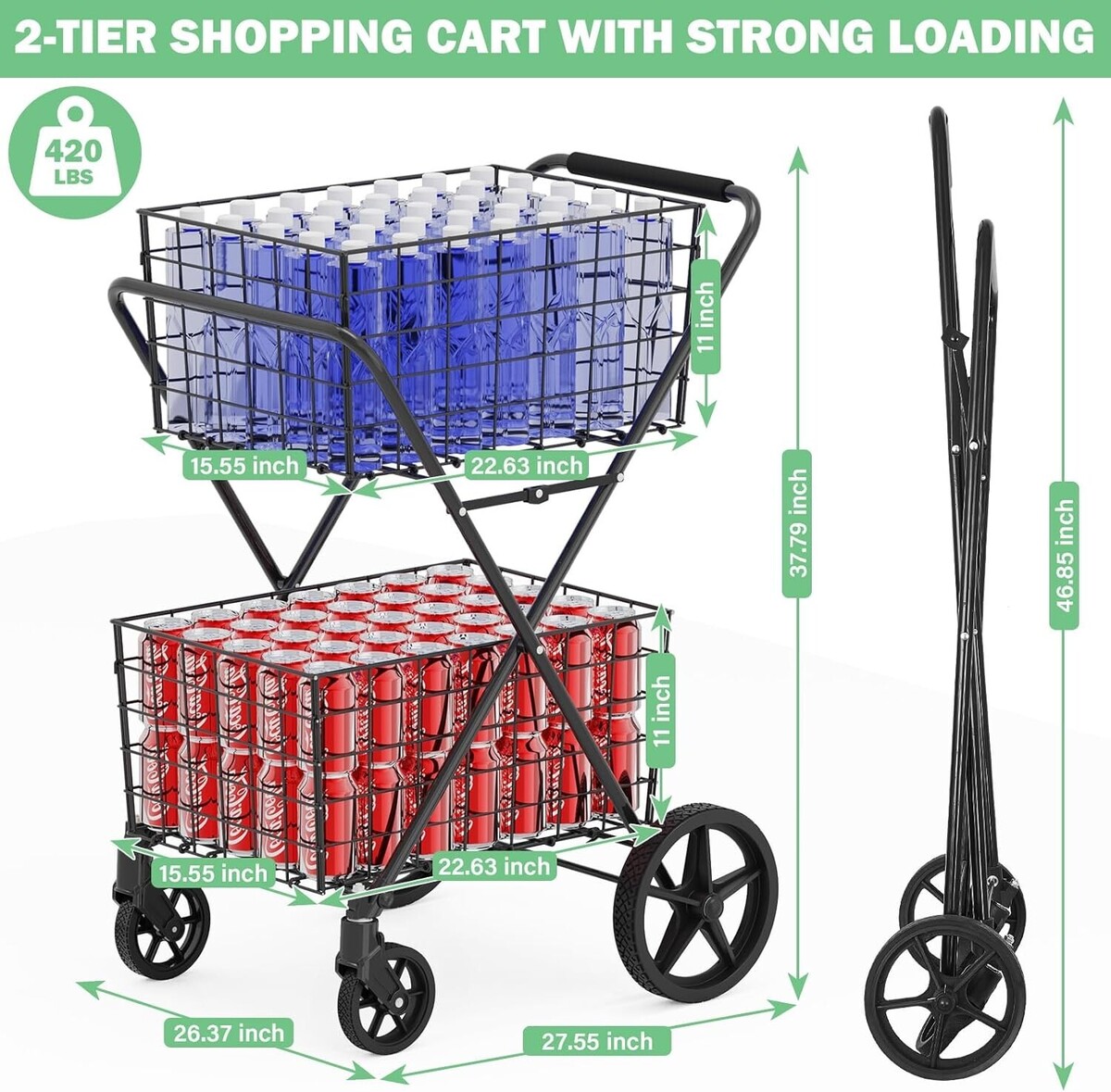 Why choose our Extra-Large 2-Tier Folding Grocery Cart?