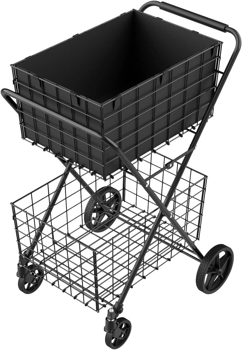 Extra-Large 2-Tier Folding Grocery Cart