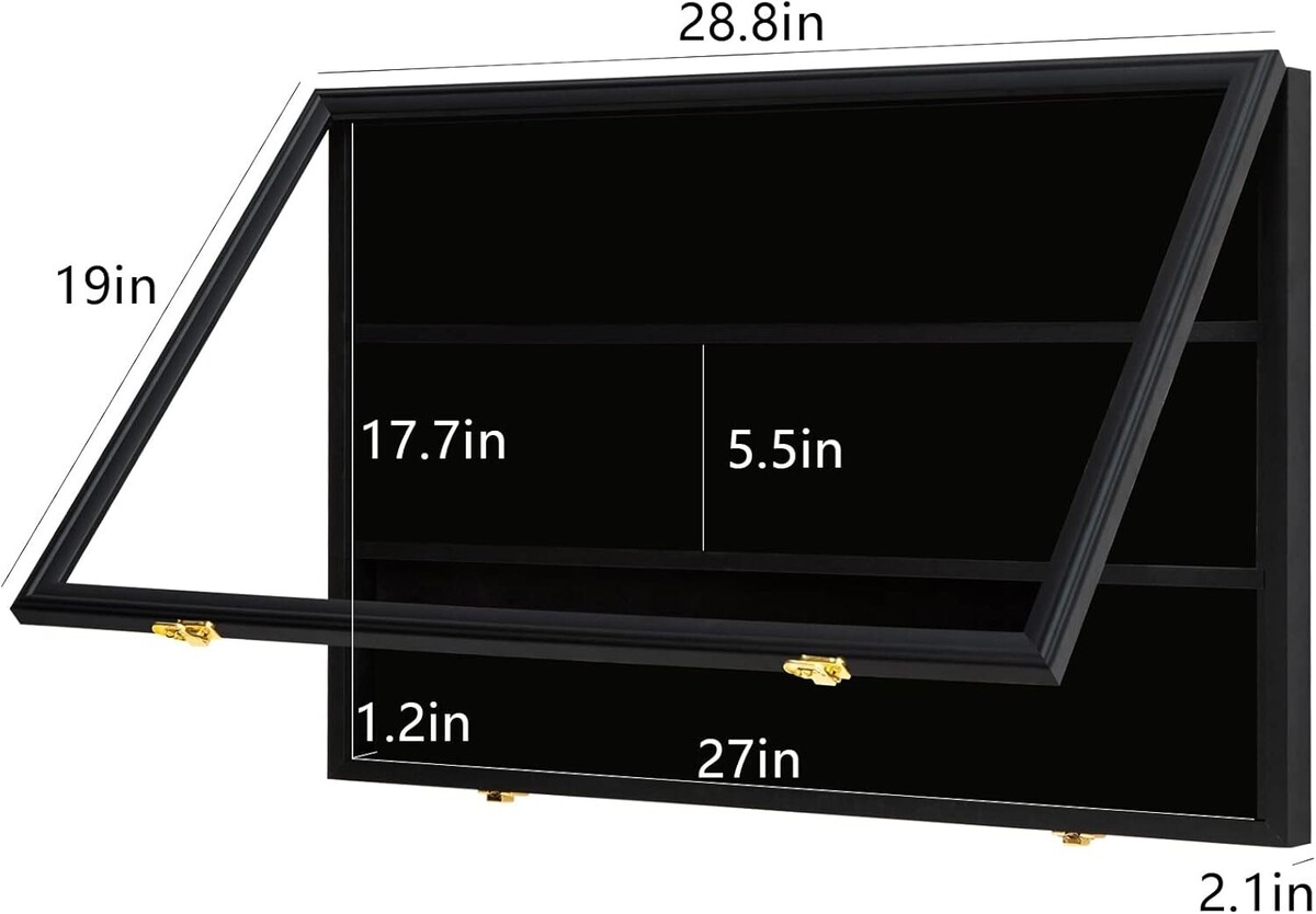CLASSIC DESIGN - Wooden card display case,2 gold plated anti-theft locks,velvet like felt lining, Shatter Proof 92% transparency and 98% UV protection acrylic door to protect your items from yellowing.