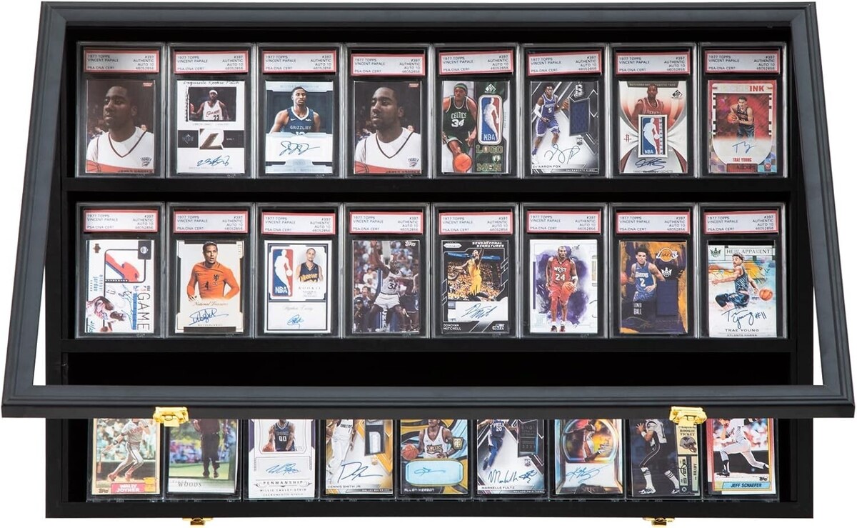 Sports Card Display Case: The perfect way to display the memorable cards that you have collected. This sport card display case can display up to a total of 24 cards. Perfect fits for most graded cards, such as baseball, basketball, hockey, football, and trading cards, or any other cards that are no more than ? tall. (NOTE: Cards are not included.)