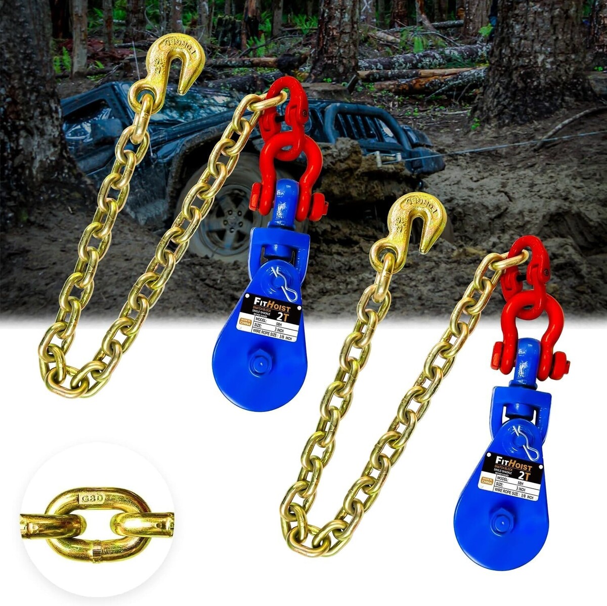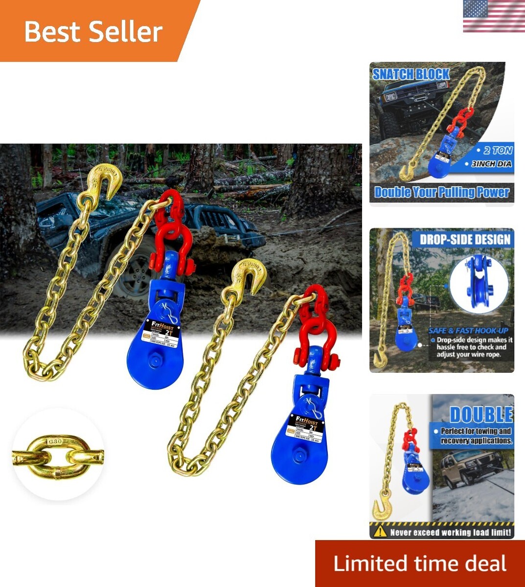 2 Tons Snatch Block with G80 Chain| 3" Sheave for 3/8" Inch Wire Rope | High Strength Snatch Blocks for Towing and Recovery Applications | Tow Truck Rollback Wrecker Car Hauler Winch2 Pack