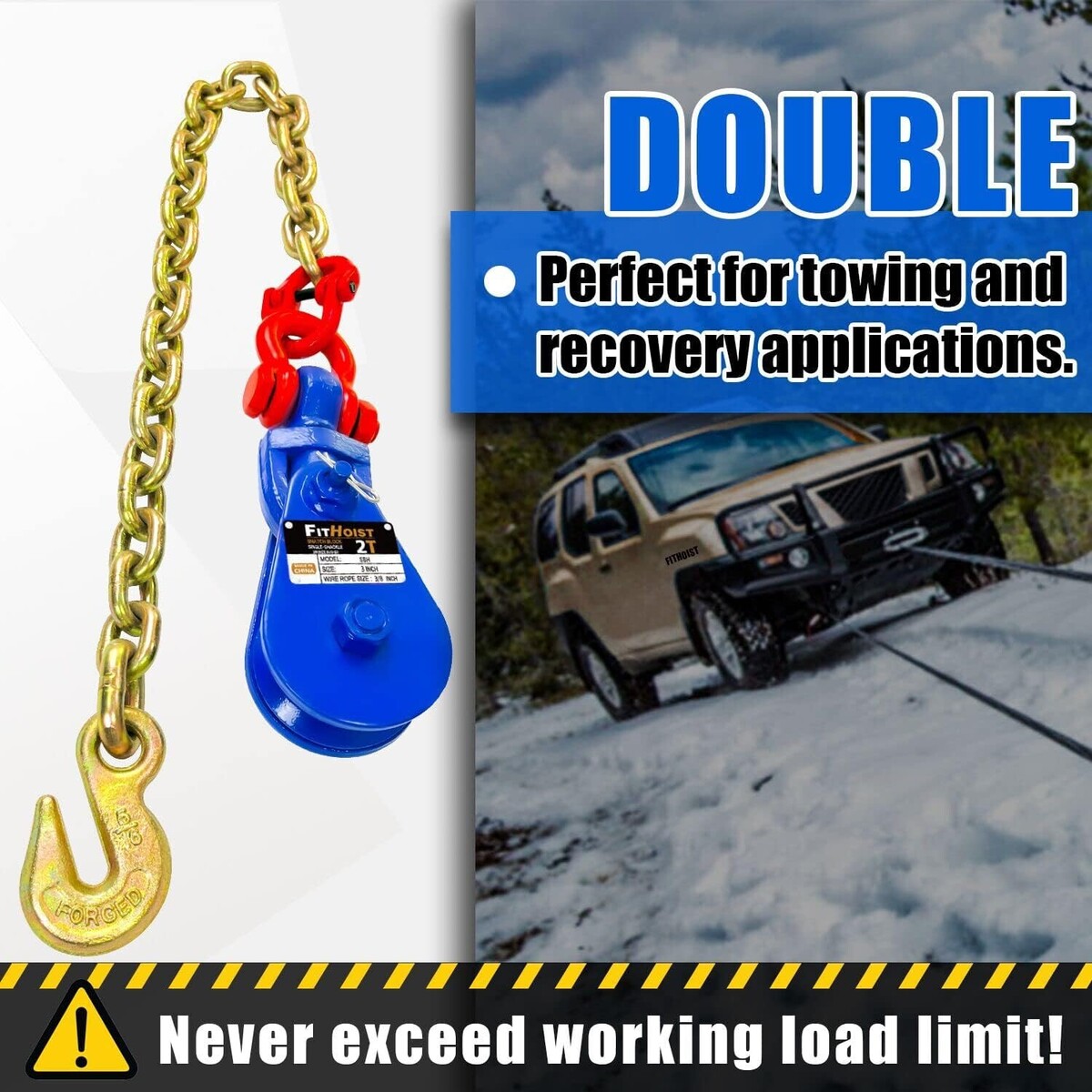 2 Tons Snatch Block with G80 Chain| 3" Sheave for 3/8" Inch Wire Rope | High ...