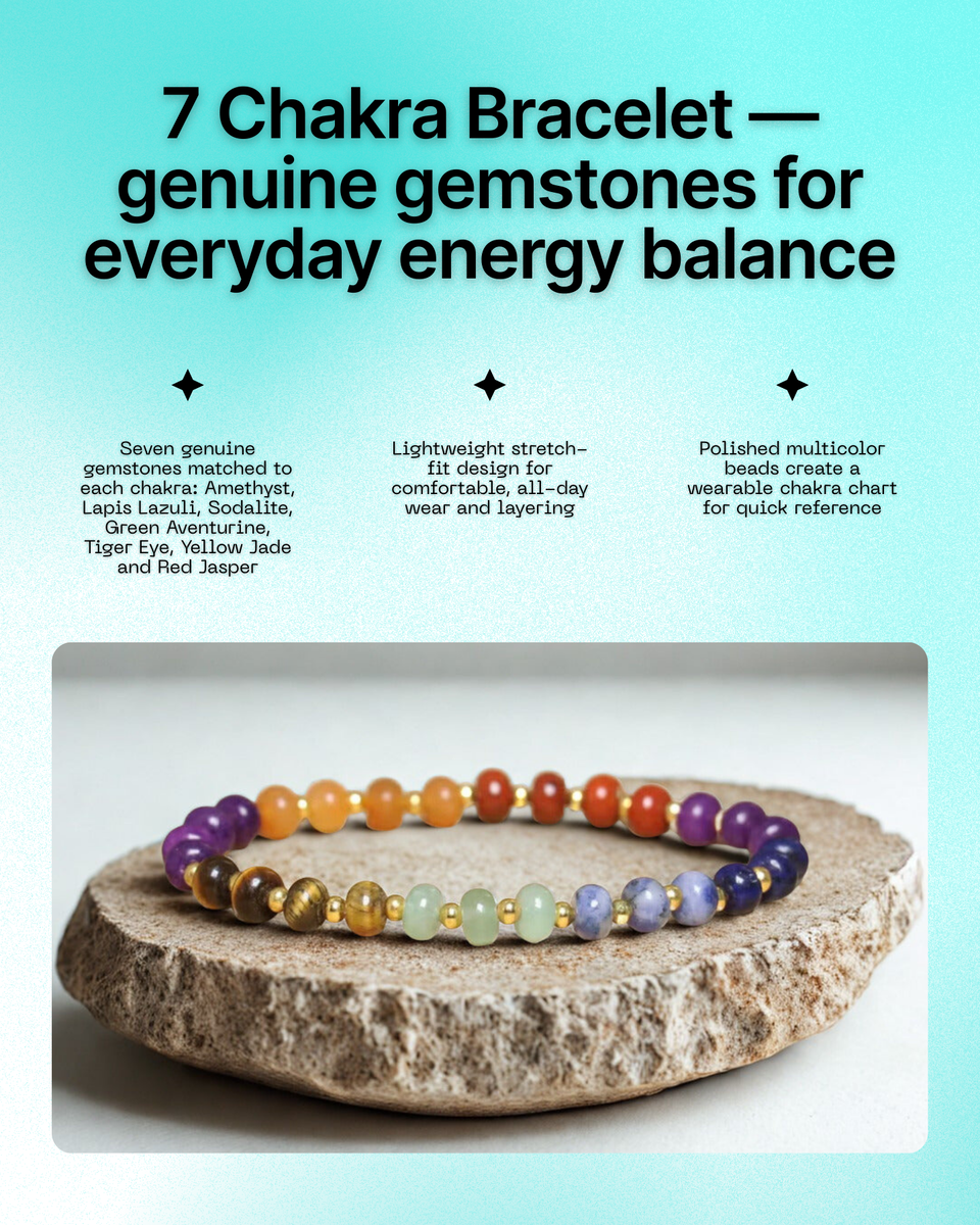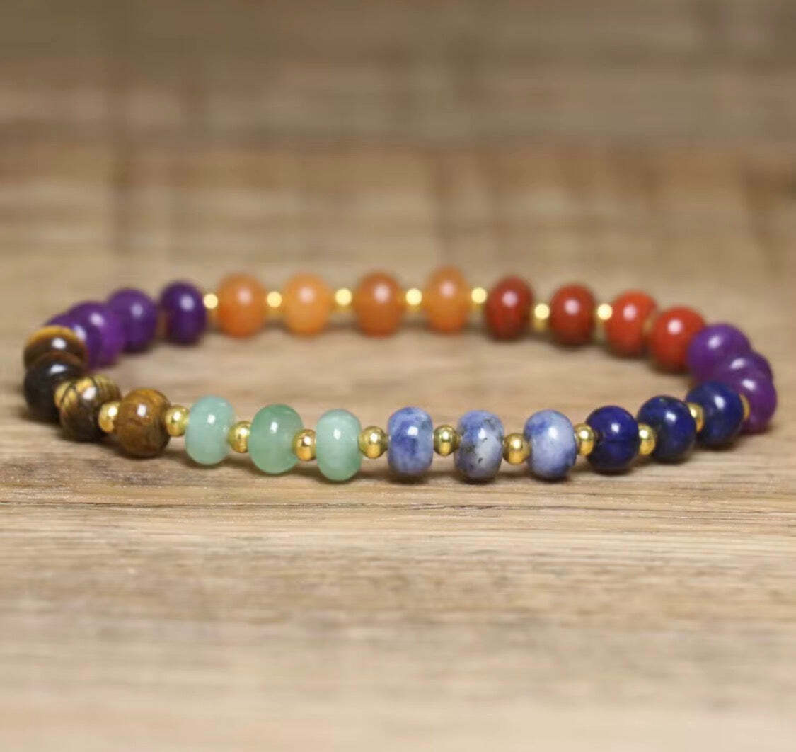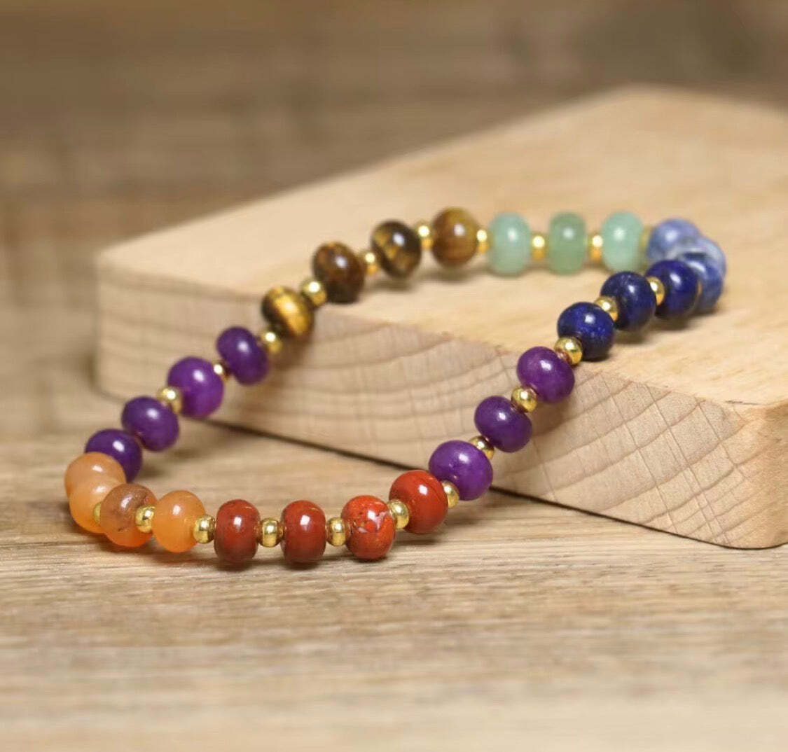 7 Chakra Healing Bracelet Multicolor Gemstone Beads Tiger Eye Amethyst Lapis Laz