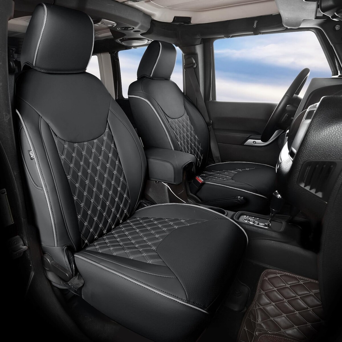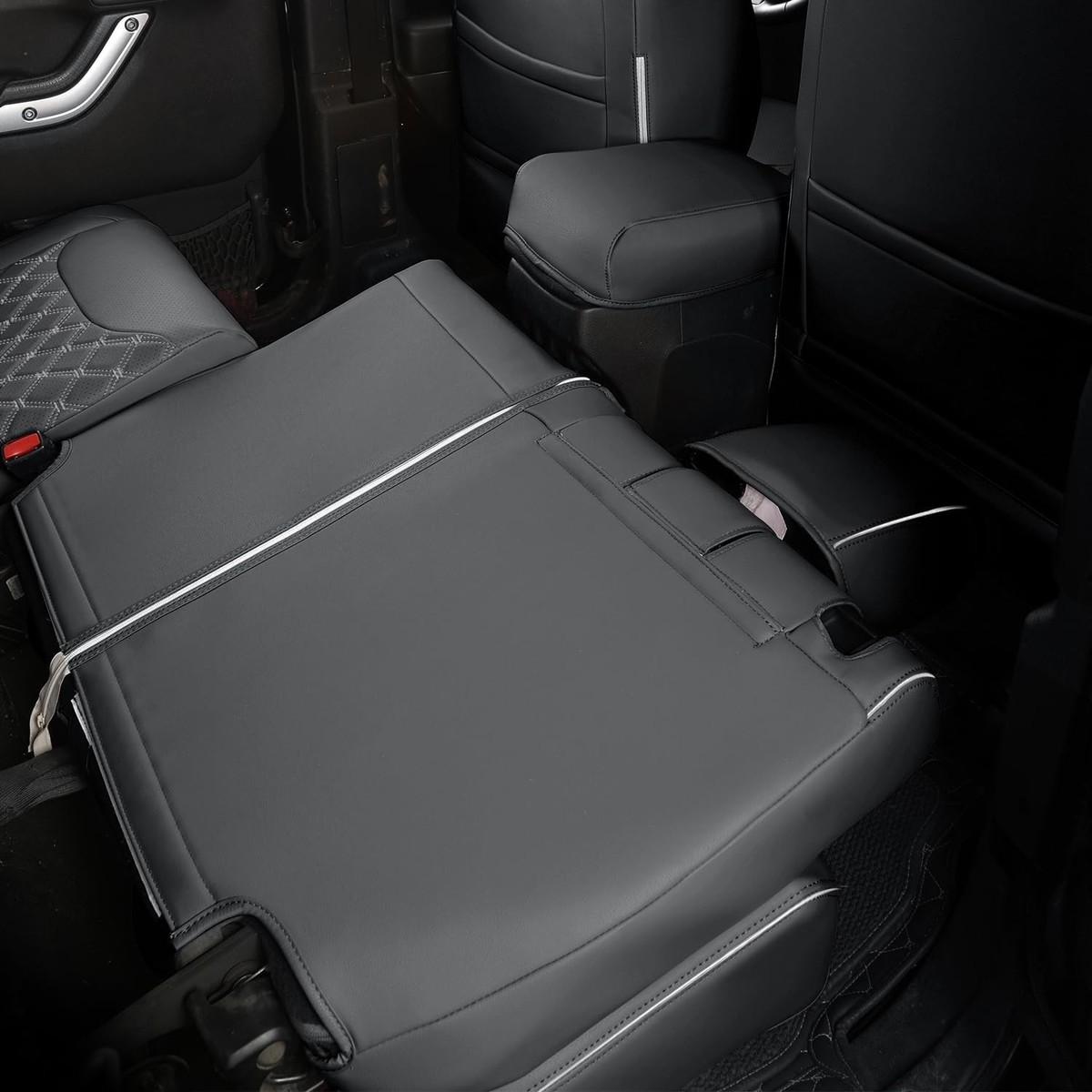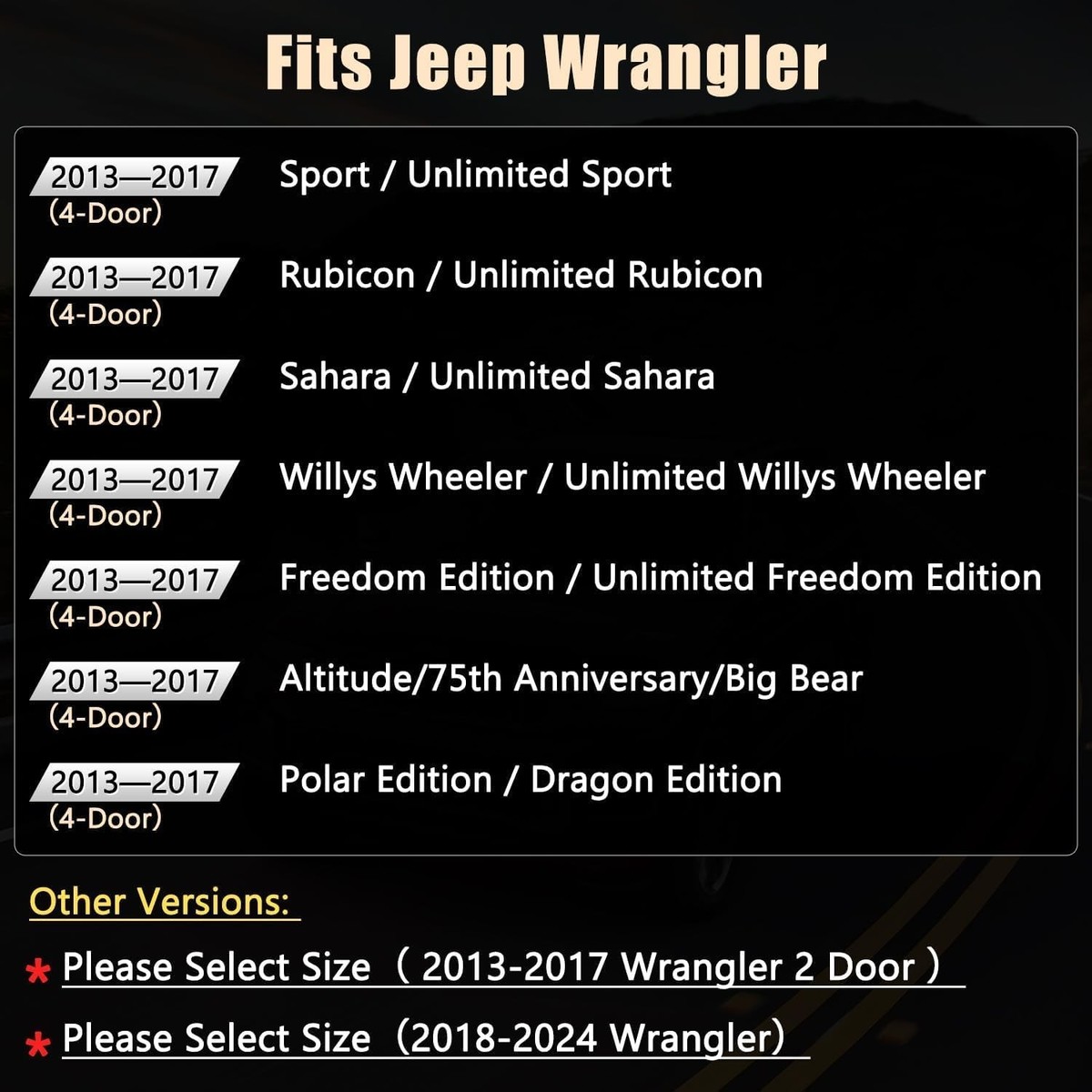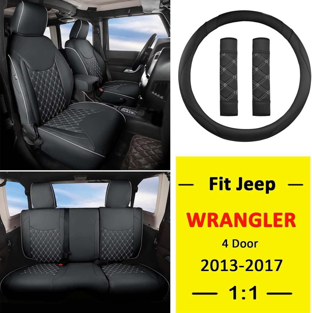 ?CUSTOM FIT? - A full set of seat covers customized according to the original car seat size 1:1, which will fit Wrangler JK 4-Door 2013 2014 2015 2016 2017 like a glove.
