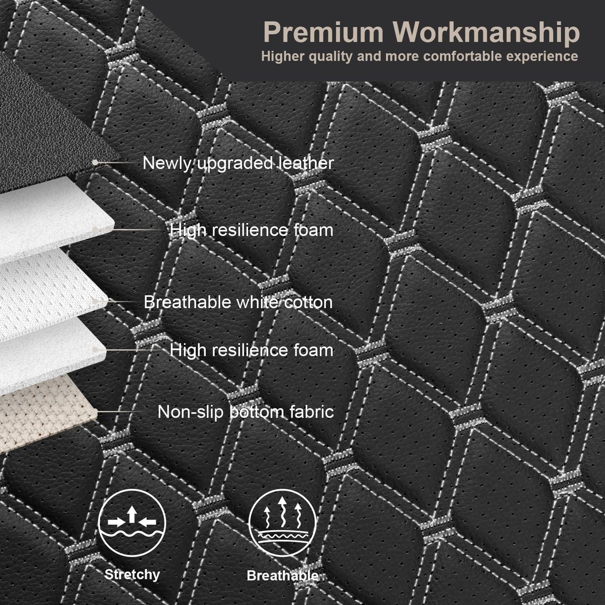 ?QUILTED DESIGN? - Both of the front seat cover and rear seat cover show rich in stereoscopic vision with a diamond-shaped quilted design and stitching decoration, simple and stylish, and it can be perfectly integrated with your car interior.
